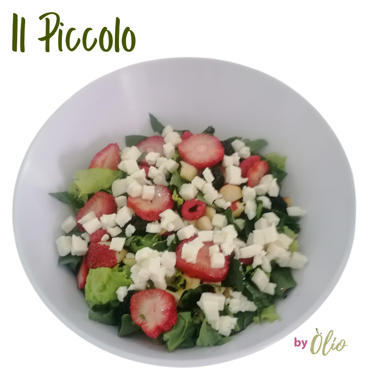 Ensalada de espinacas, lechuga, fresas, frambuesas, manzana, zarzamoras, queso de cabra y queso mozzarella.