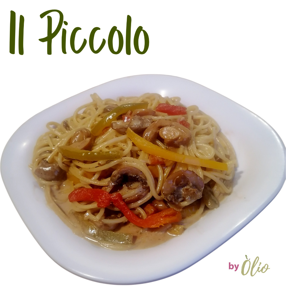 Pasta cremosa con pimientos y champiñones salteados en salsa inglesa (370gr).