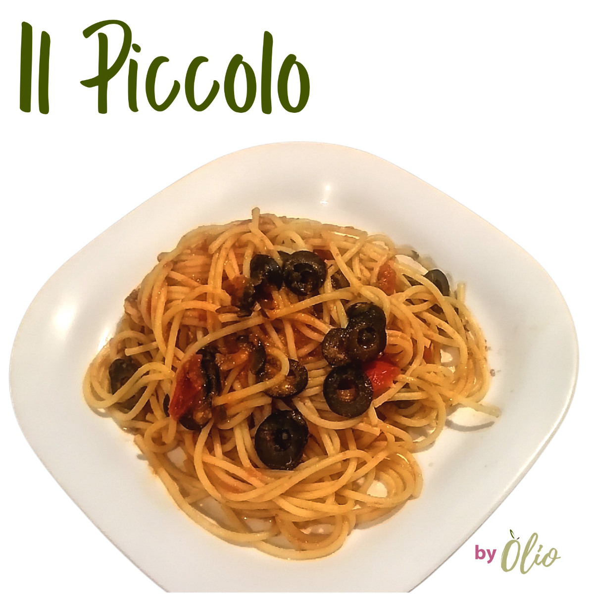 Pasta preparada con ajo, jitomate, aceitunas negras, alcaparras y anchoas (270gr).