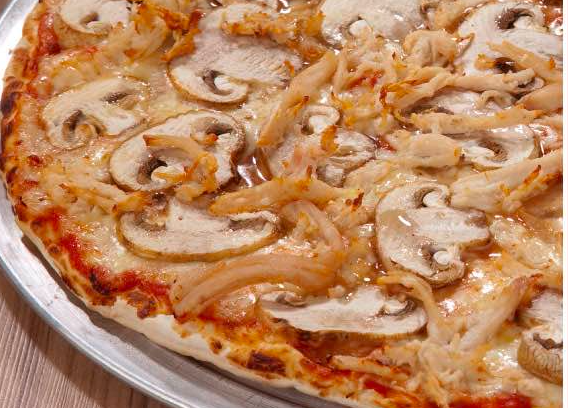 Ricos champiñones salteados, pepperoni y queso.