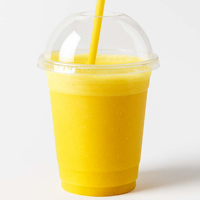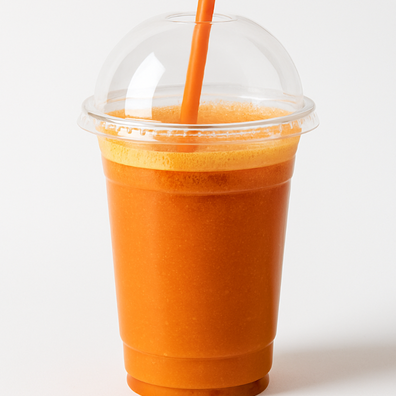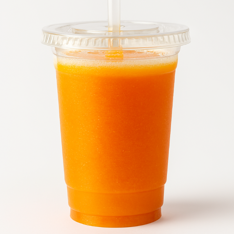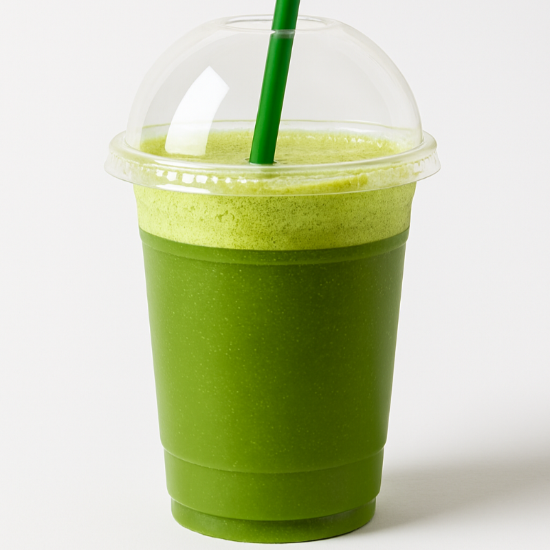 Jugo a base de Naranja, Piña, Pepino, Manzana, Apio, Espinaca y un toque de Gengibre, todo Natural