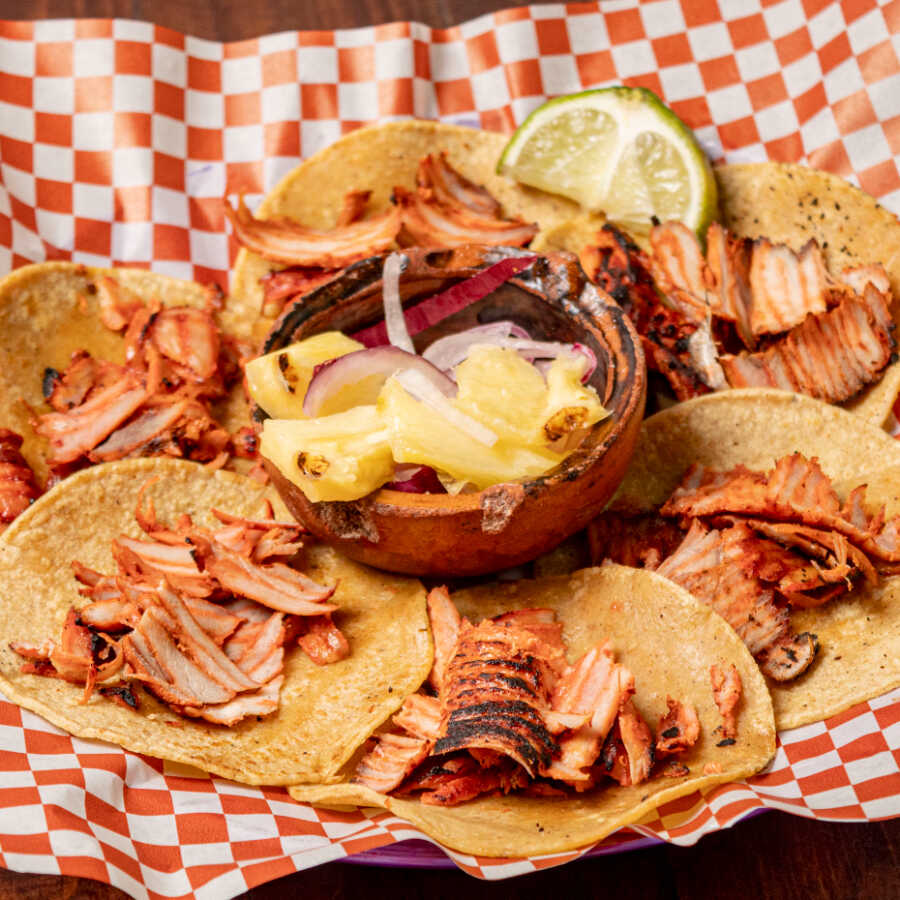 200 gr de Carne al Pastor, tortilla de maíz mediana (6pz) acompañado de cebolla morada con habanero