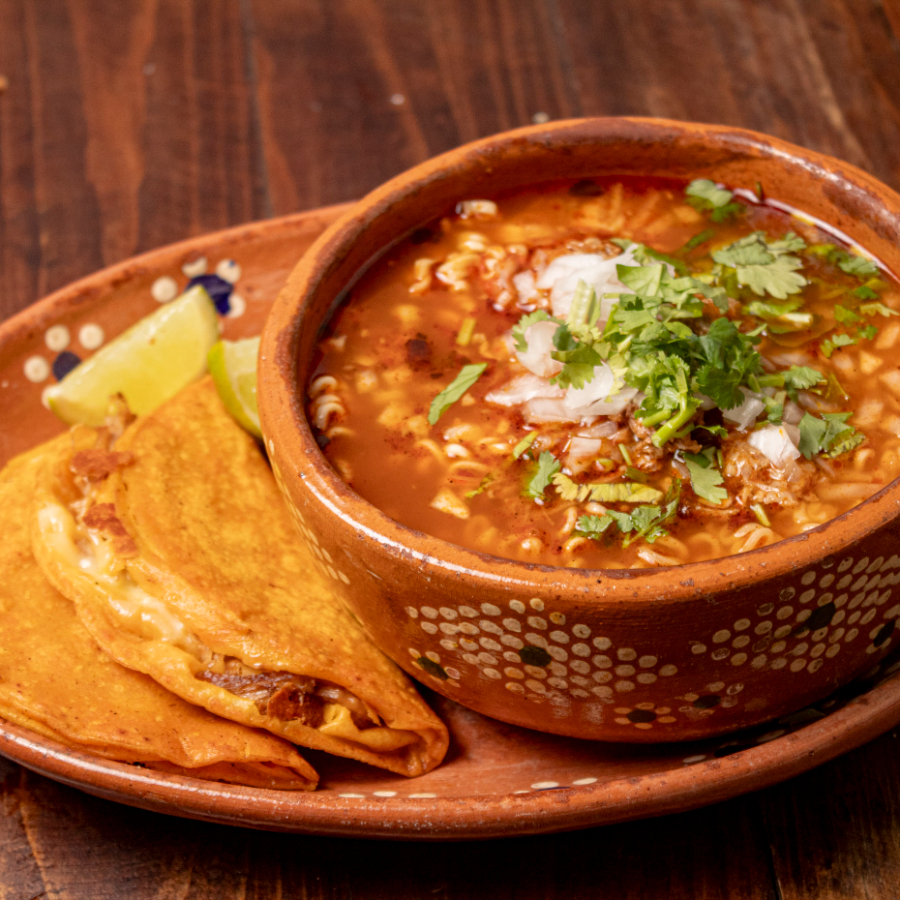 Ramen con nuestra deliciosa birria, Incluye dos quesadillas para que las puedas chopear.