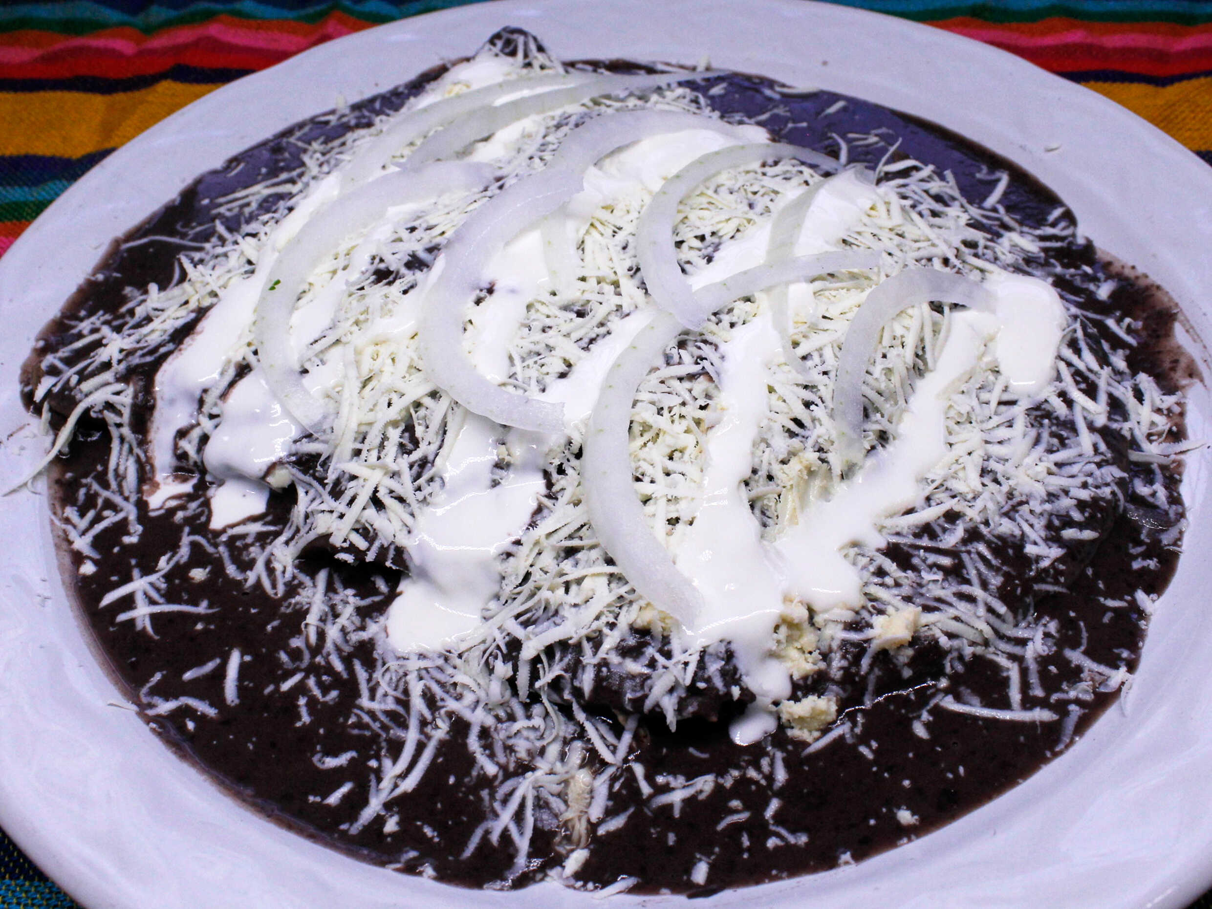 1 orden de 4 ricas enfrijoladas acompañadas de cebolla, queso y crema.