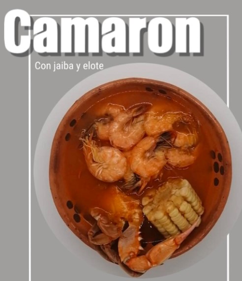 Camarón en cáscara, caldo de tomate con jalapeño. No picante.