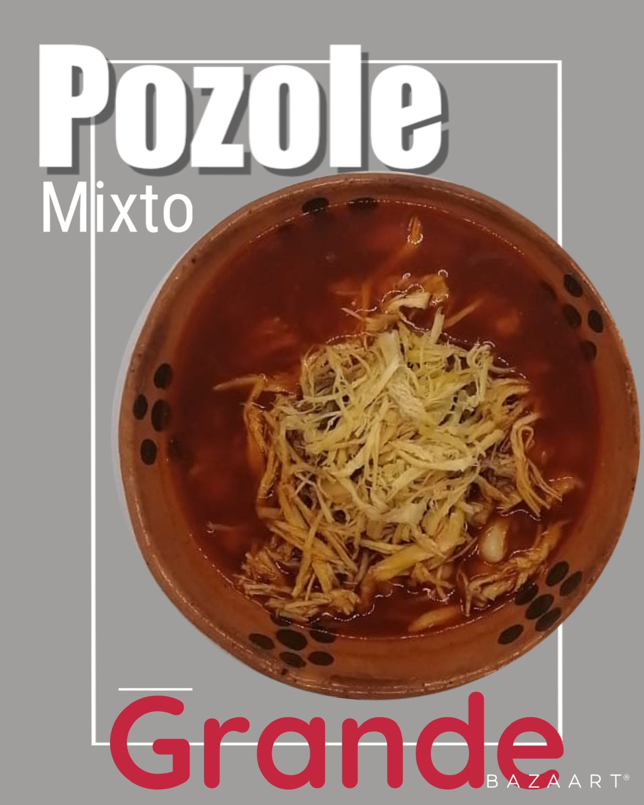 Maíz Cacahuazintle con pechuga de pollo y maciza de cerdo. No picante.