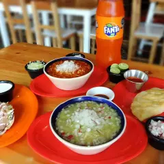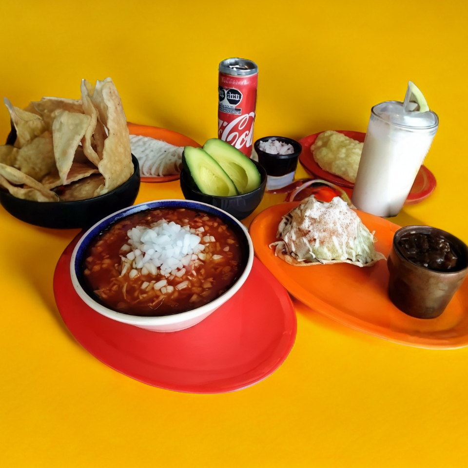 Pozole Grande 900 ml*2 + Refresco 2 L*1 + Postre*1 + Guarnición de Cortesía*1
