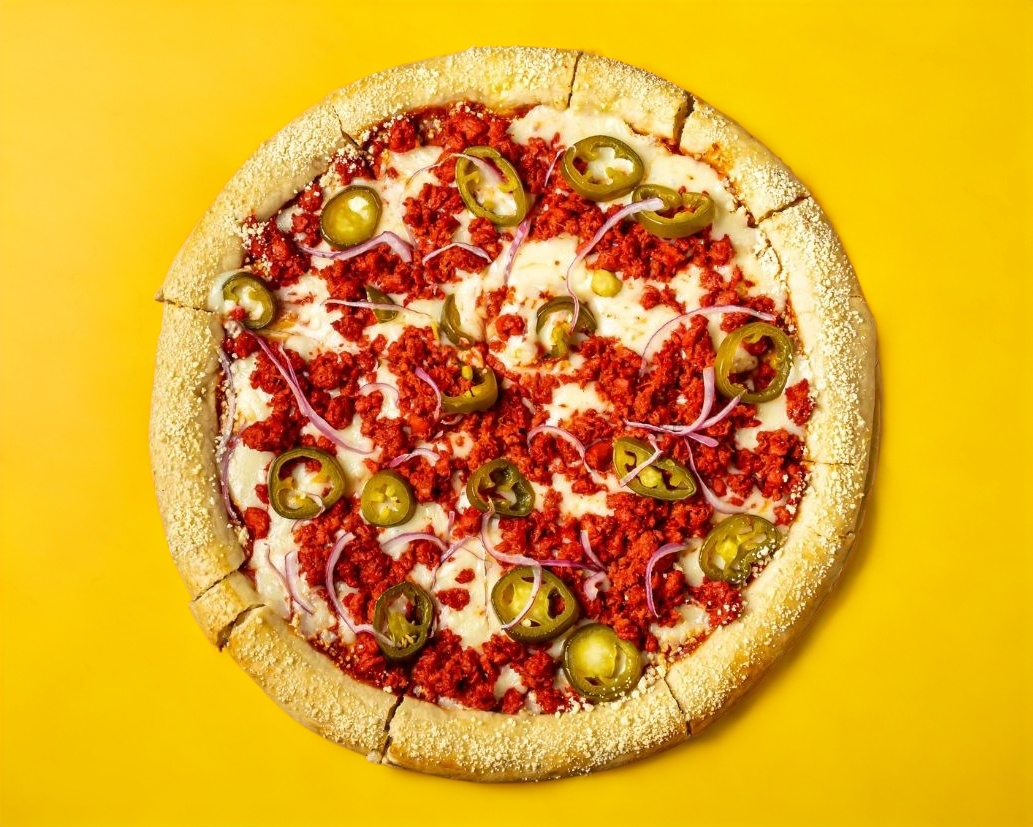 Salsa de tomate, queso mozzarella, chorizo, cebolla morada y jalapeño.