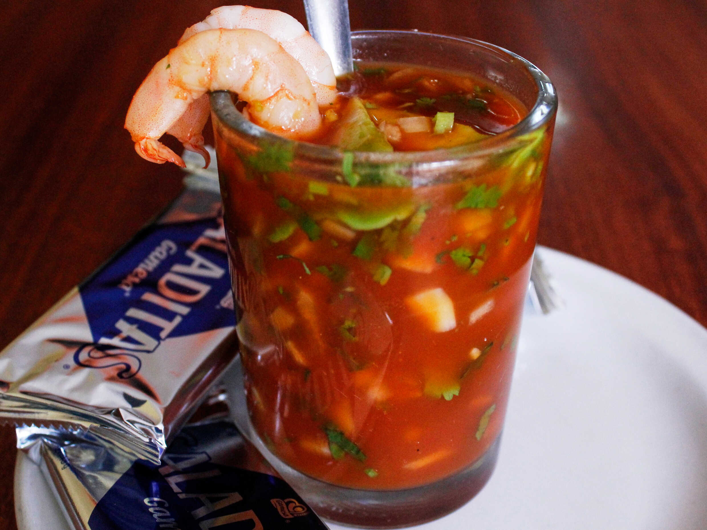 Caldo de Camarón com Cáscara Tamaño Consome + Taco