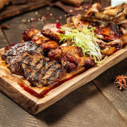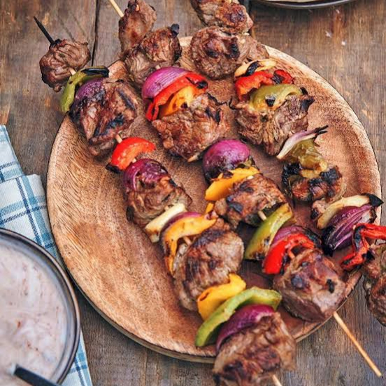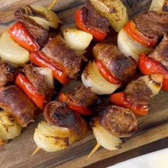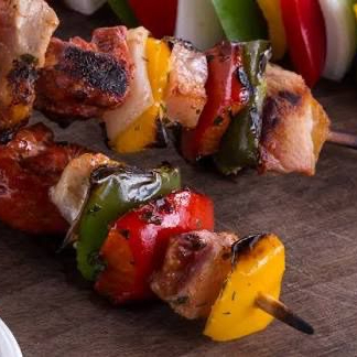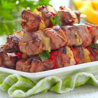 Incluye proteína a elegir (arrachera, picanha, rib eye, sirloin), cebolla morada, pimiento, piña, champiñones y queso.