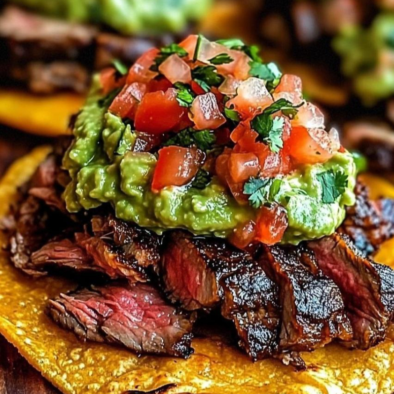 Base de guacamole natural, arrachera, crema y pico de gallo