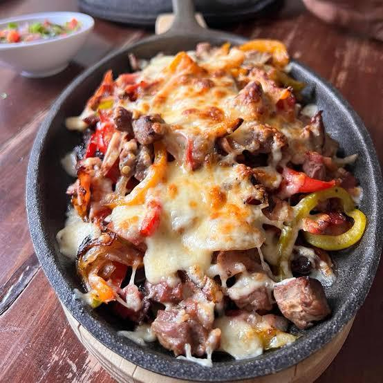 Incluye arrachera, pimiento, cebolla morada, queso asado y chistorra
