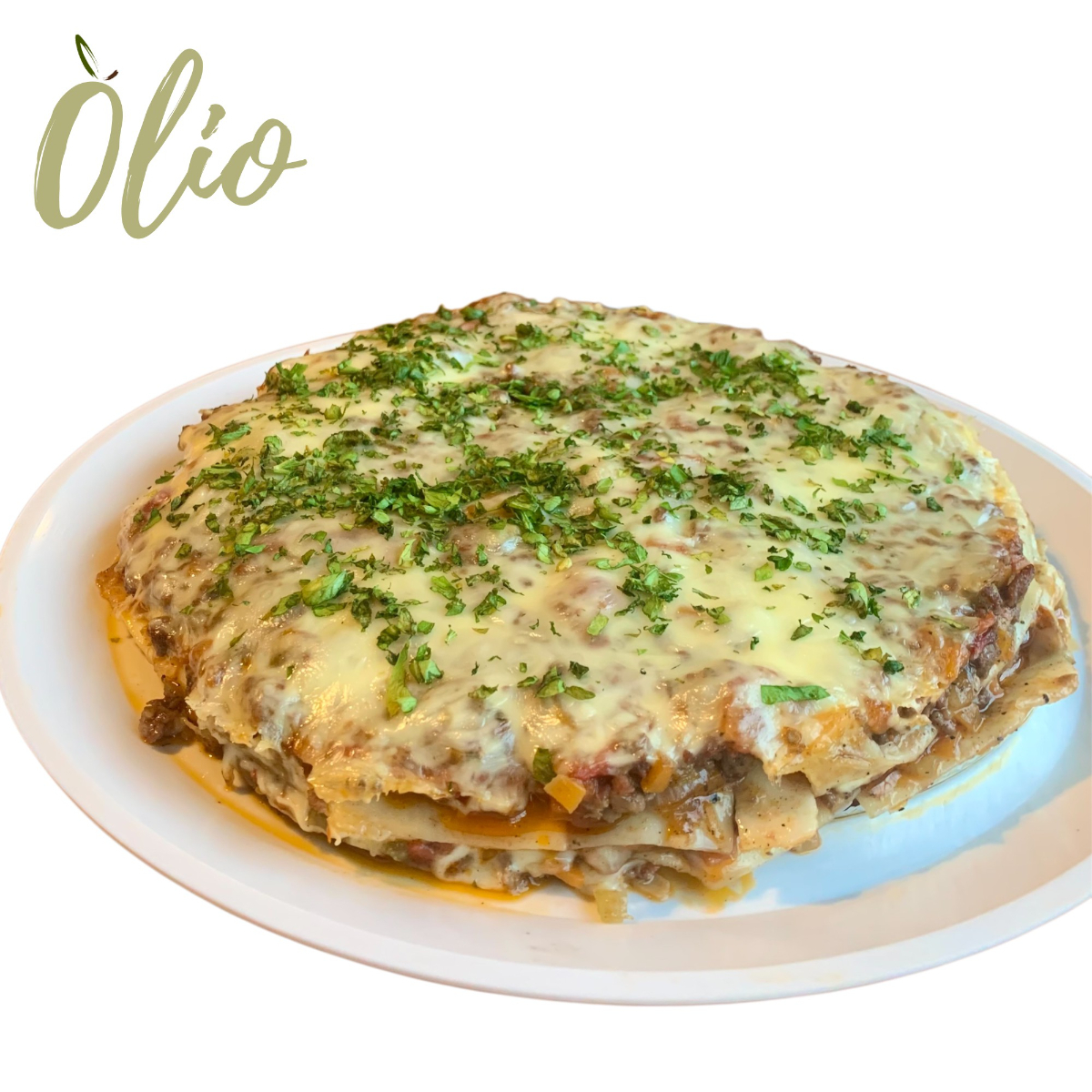 Lasagna preparada con salsa ragú bolognese a base de carne molida de res, zanahoria, apio, jitomate y cebolla cocinada en un proceso de alrededor de 6hrs. lista para degustarse ahora(1.2kg aprox.)