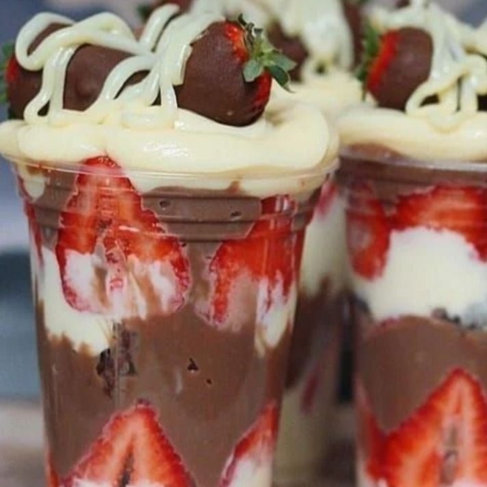 Vaso de 12 Oz de fresas naturales previamente seleccionadas acompañado de crema de leche y ingredientes a elegir