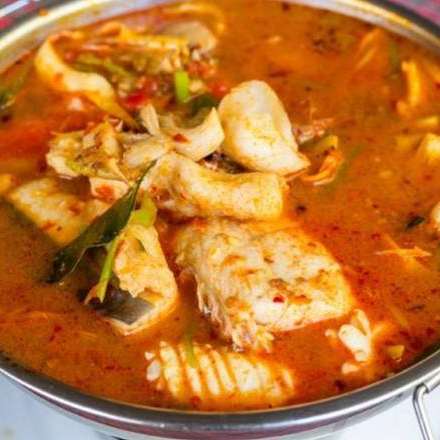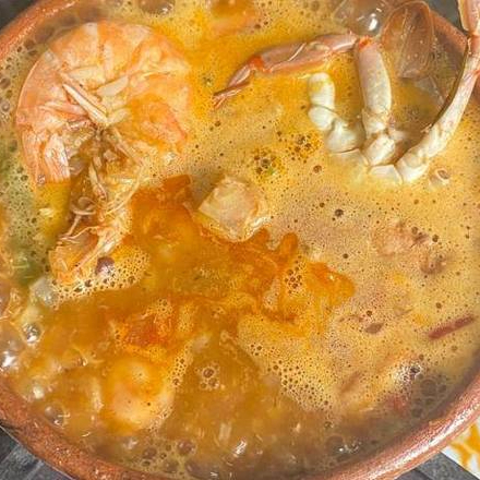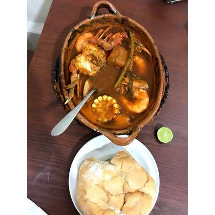 Chilpachole (picante) de mariscos 1 L; con pulpo, camarón, ostión, jaiba desmenuzada, caracol y surimi; acompañado de tortillas, totopos, aderezo y limón.
