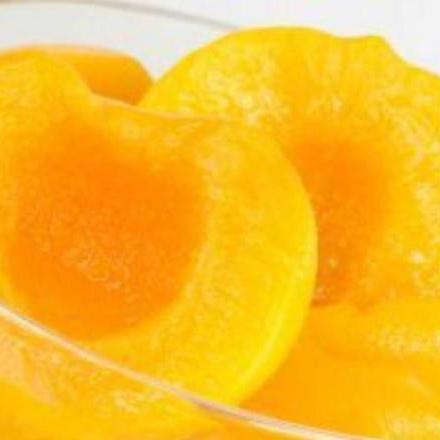 Mitades de durazno en almíbar, postre clásico y frutal.