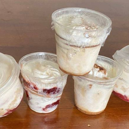 Postre clásico de capas de galleta maría y crema suave, porción individual.