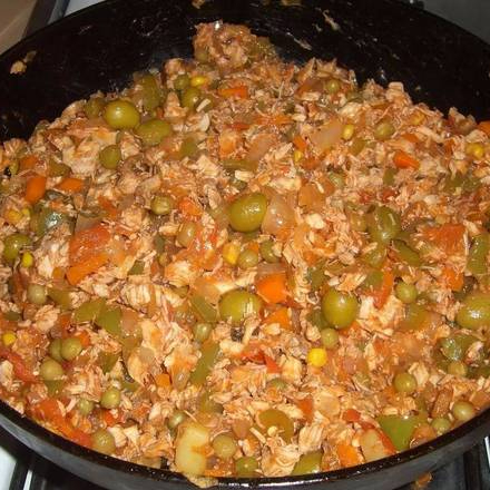 Minilla de pescado: pescado desmenuzado guisado con jitomate, aceitunas verdes, cebolla, chícharo, zanahoria y pimiento.