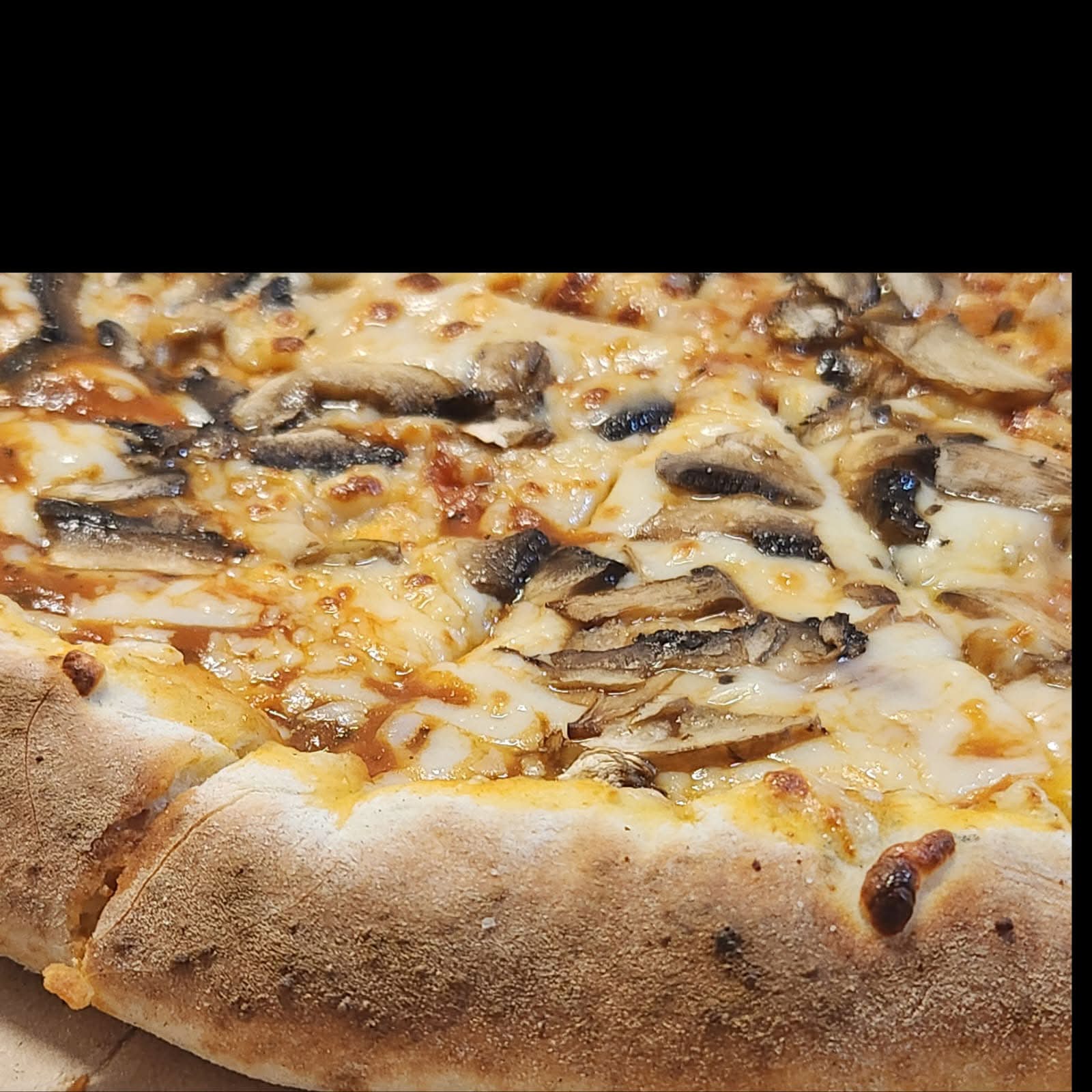 Masa artesanal con nuestra salsa especial de la casa, queso mozzarella, y champiñones.