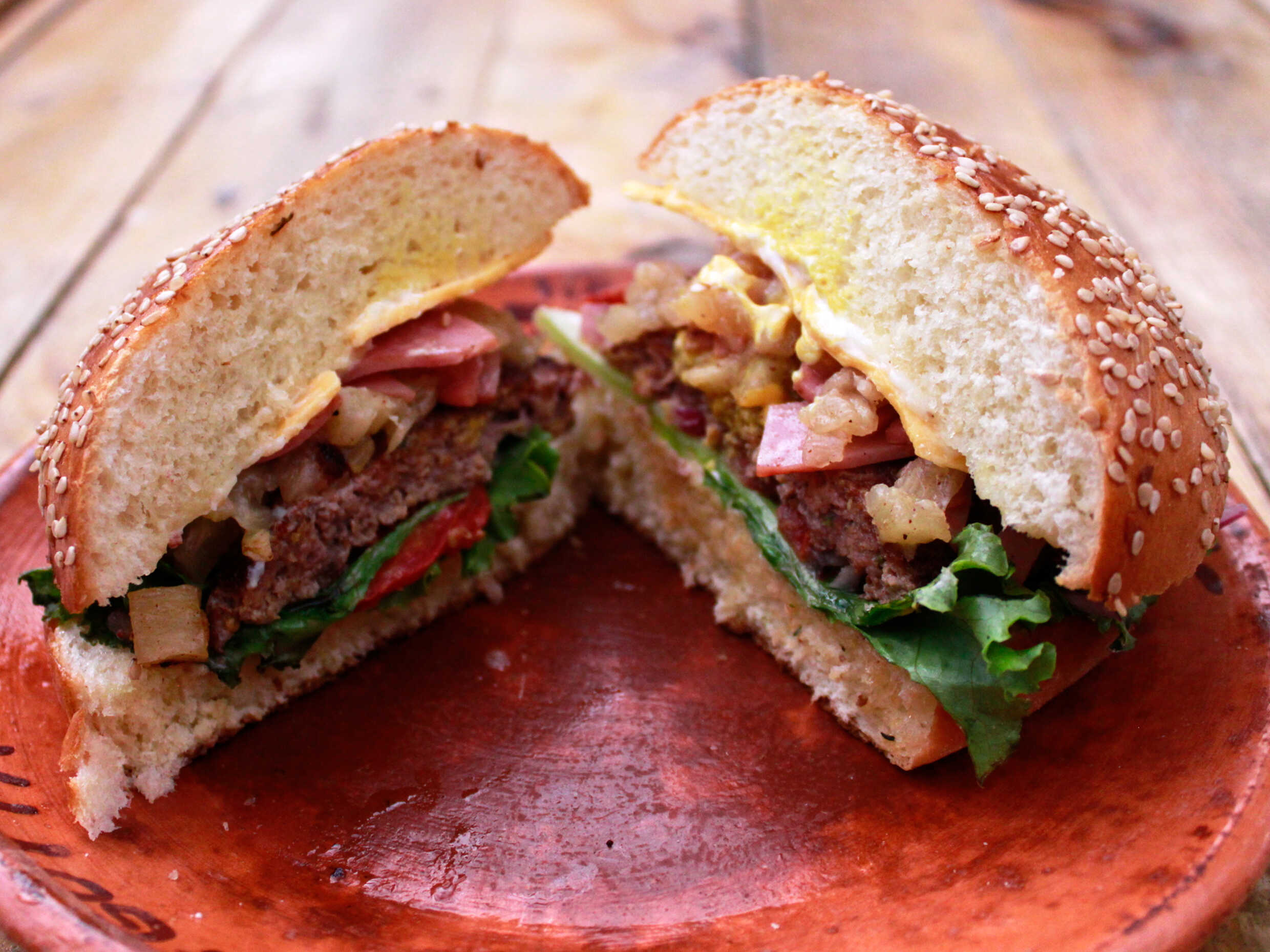 300 gr de carne, doble queso amarillo,mermelada de tocino, aderezo de ajo,base de vegetales,mostaza, mayonesa, pan de la casa. Incluye Papas a la Francesa