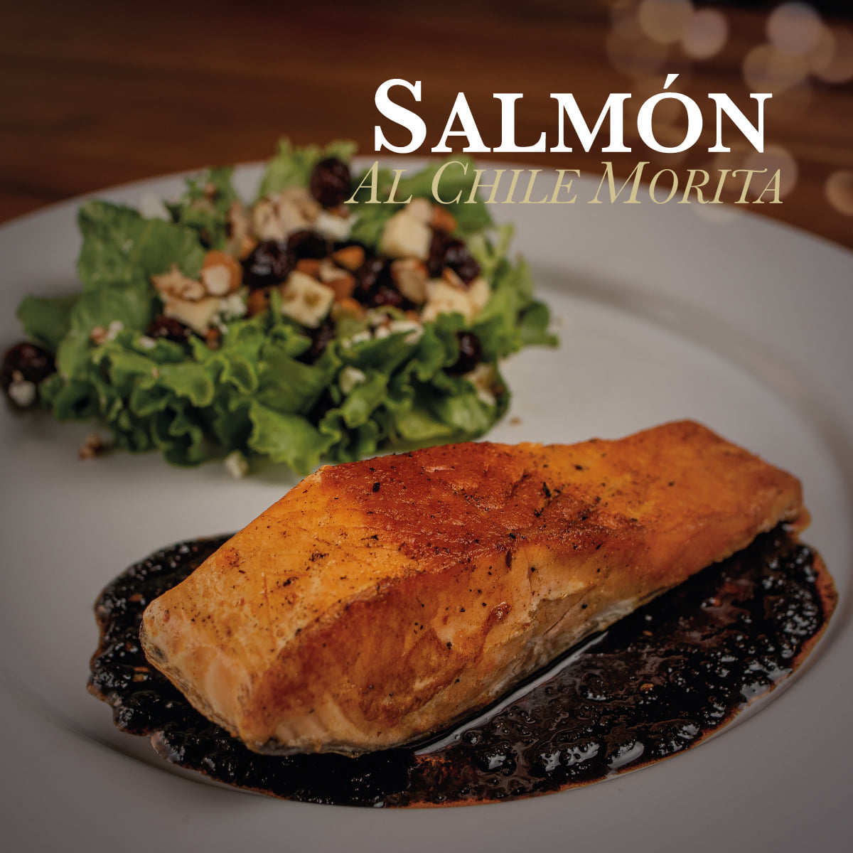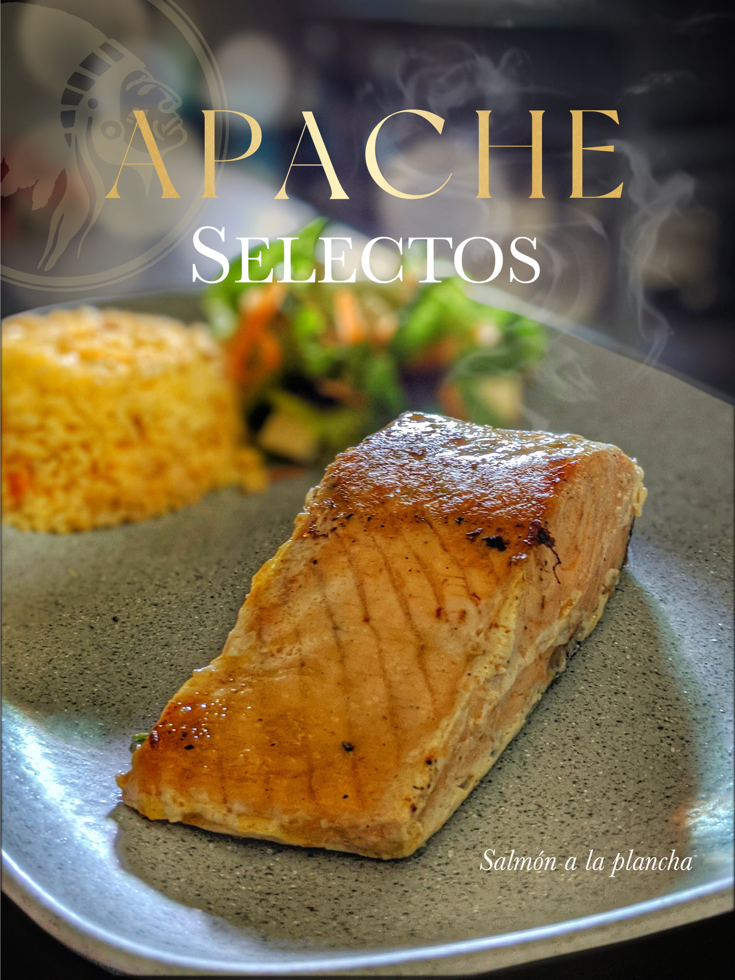 200 gr, filete de lomo de salmon a la plancha, acompañado de pure de papa con zanahoria y ensalada de verduras