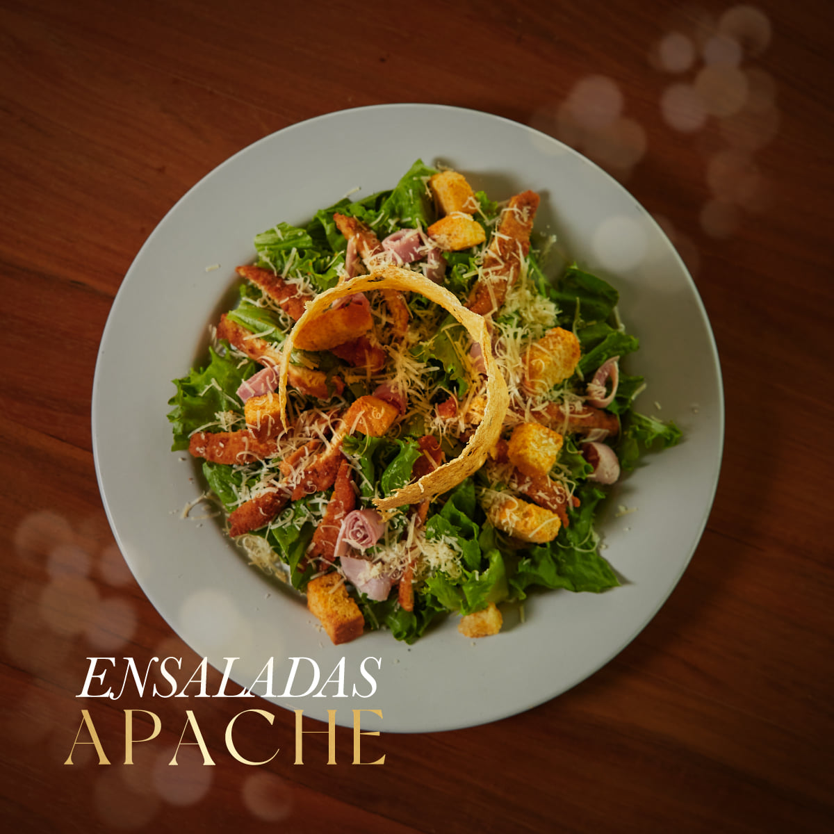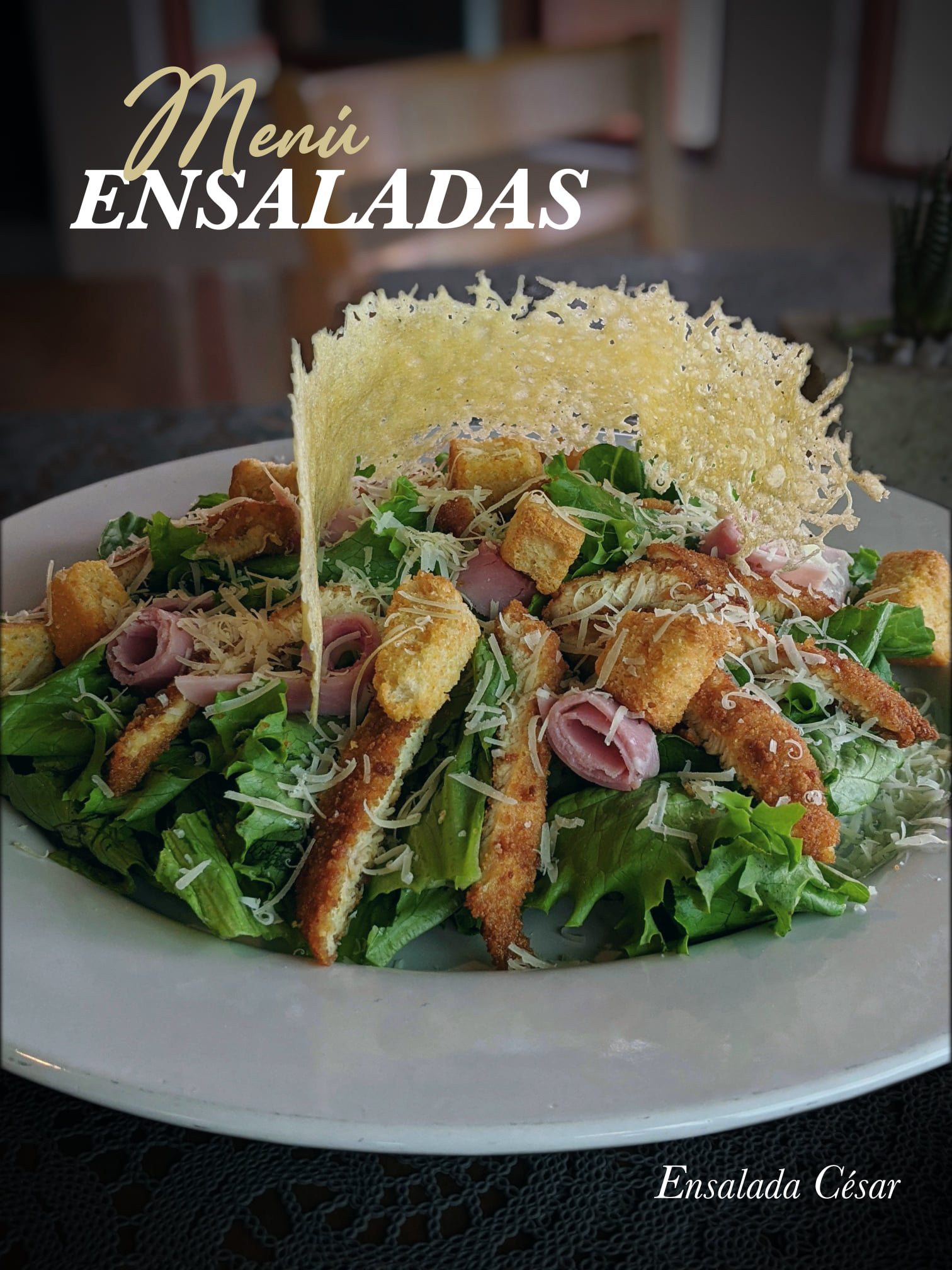100 gr, nuestra version de un clasico tijuanense : Fajitas de pollo empanizadas o asadas, jamon de pavo, crutones, vinagreta de la casa y una corona de queso parmesano