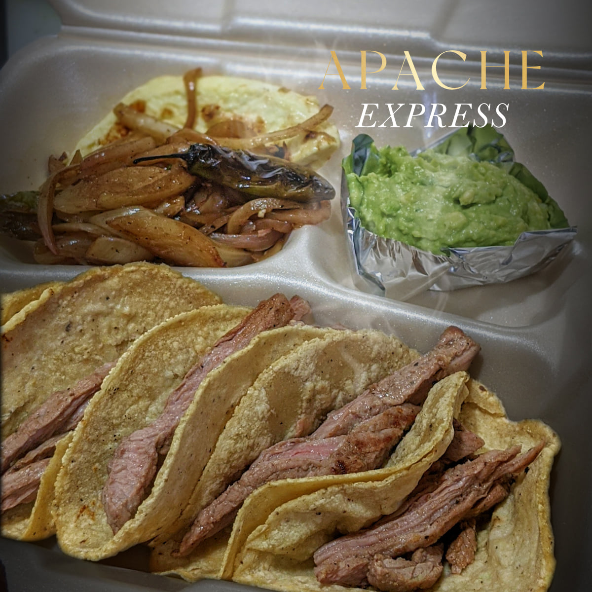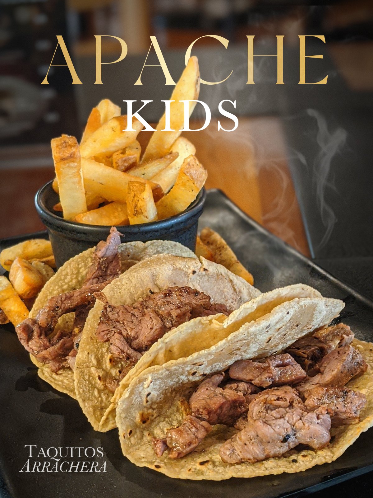 Son tres taquitos de arrachera con papas a la francesa. Incluye sopa, bebida y postre.