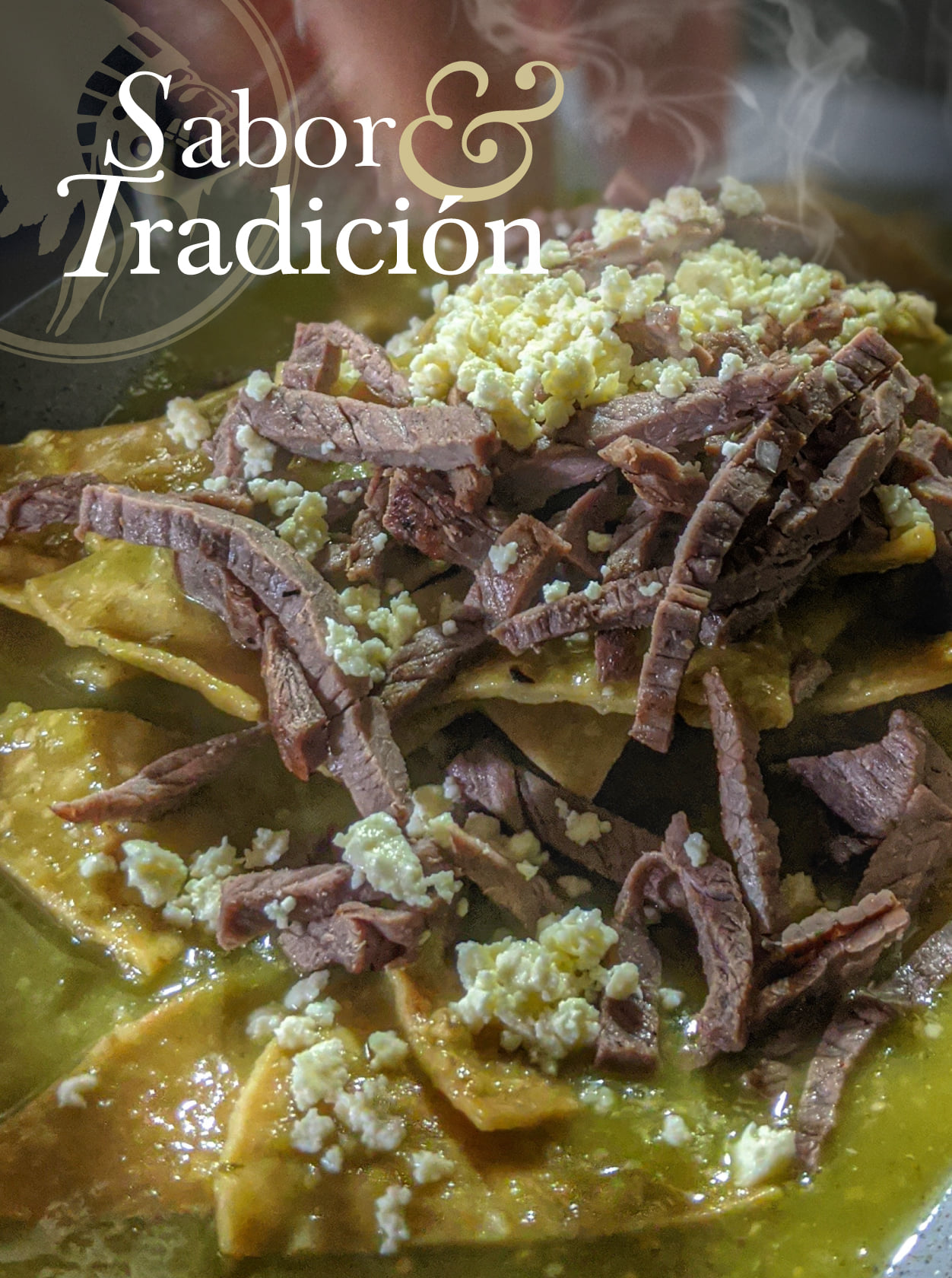 Receta especial del chef, con guarnicion de cilantro, cebolla y chile verde finamente picado