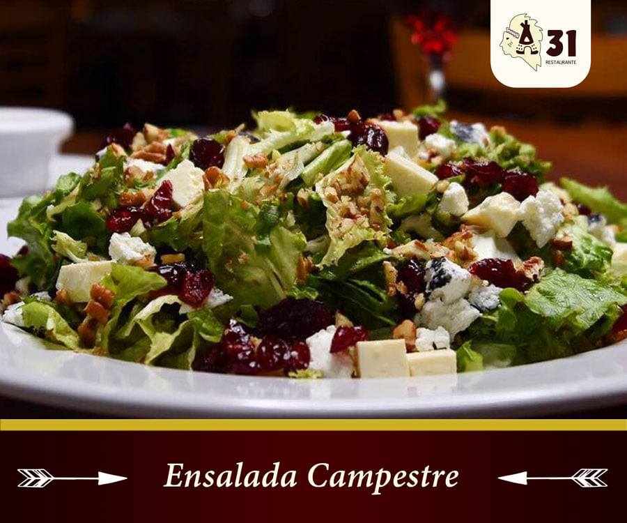 Combinacion de lechuga, queso panela, queso de cabra, arandanos, nuez, almendras y vinagreta de la casa