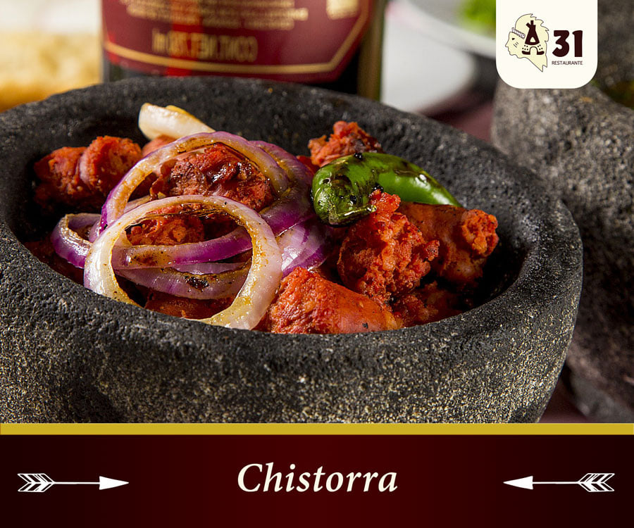 200 gr. Chistorra asada con cebolla y chile verde, natural o en salsa de su preferencia