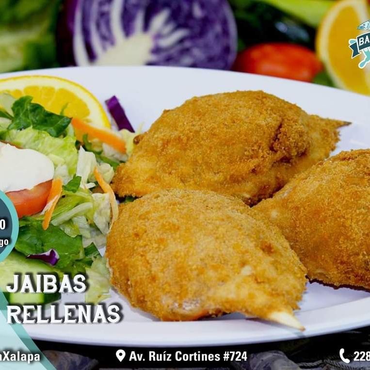 4 pzas de jaiba empanizadas rellenas de marisvcos sazonados