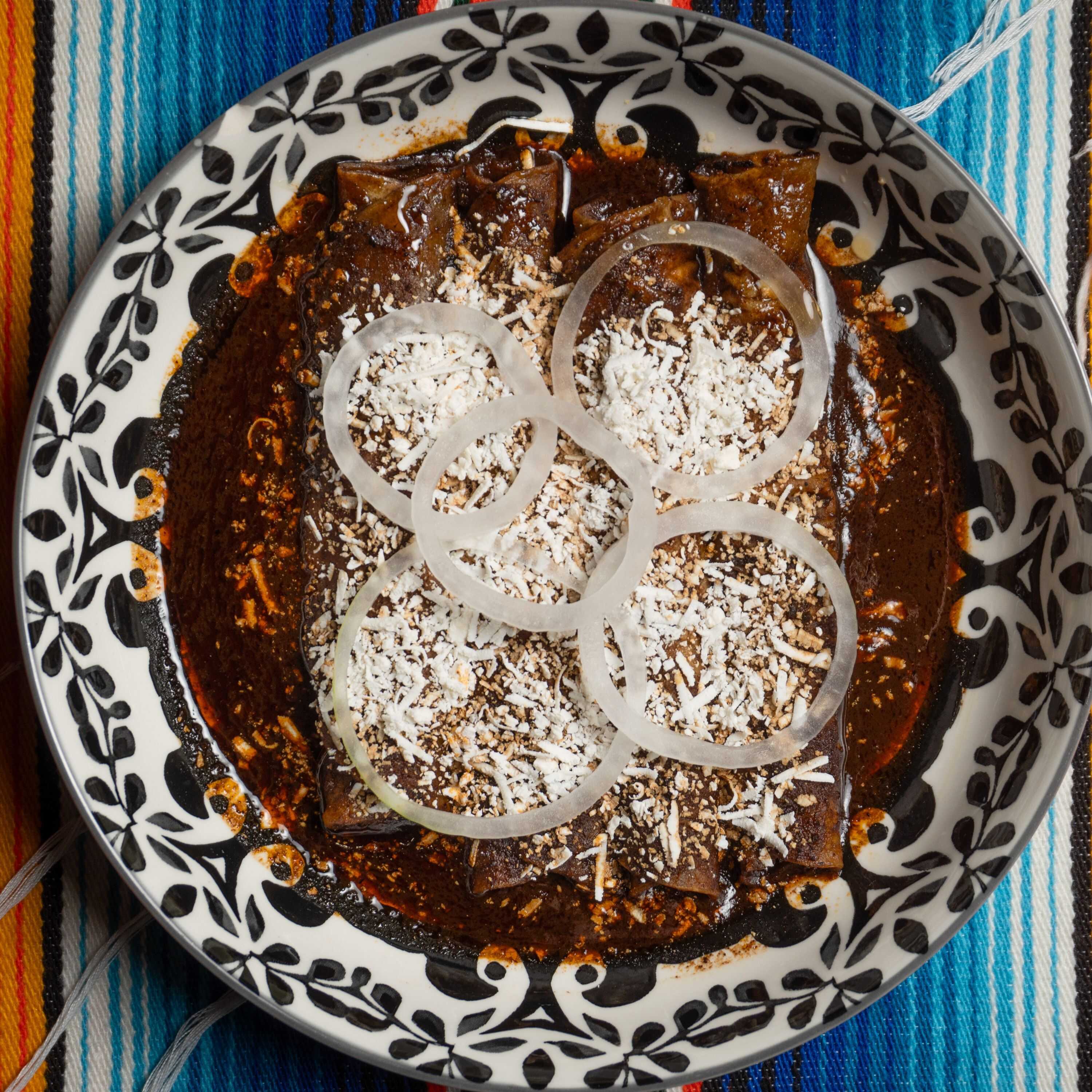 4 pz bañados en un exquisito mole tradicional Naolinqueño acompañado de queso y cebolla