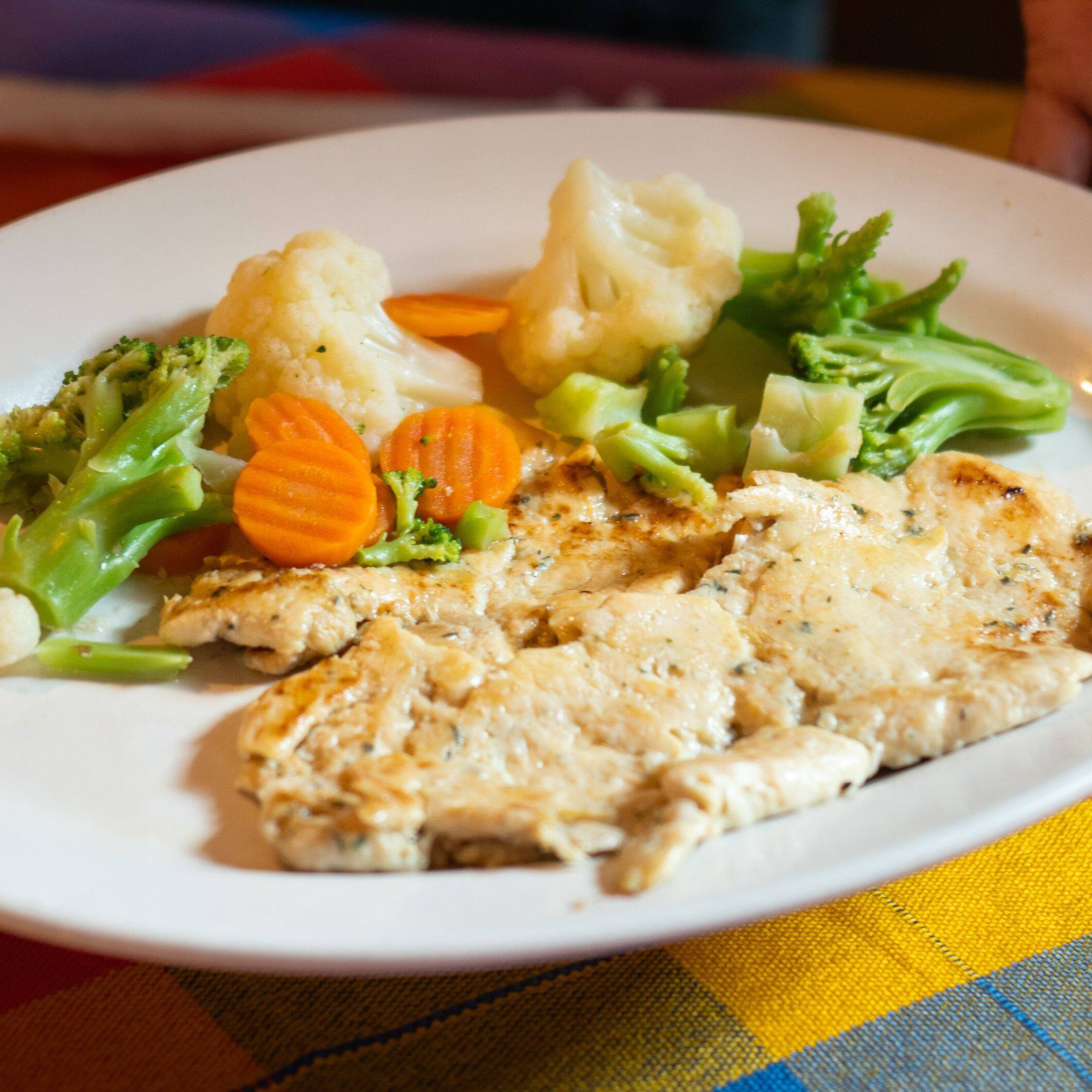 Pollo fresco acompañado de verduras cocidas al vapor