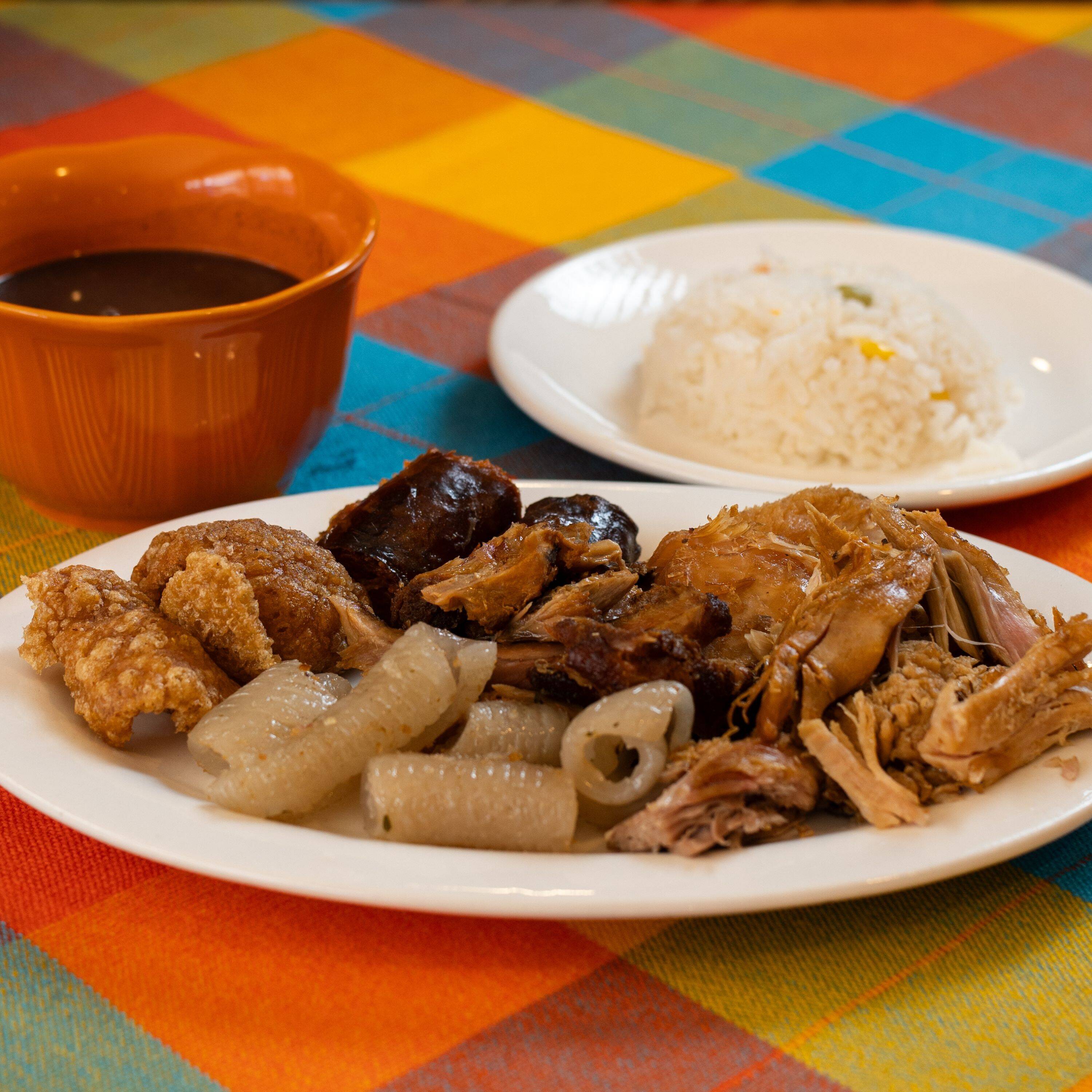 Chicharrón, longaniza y carnitas