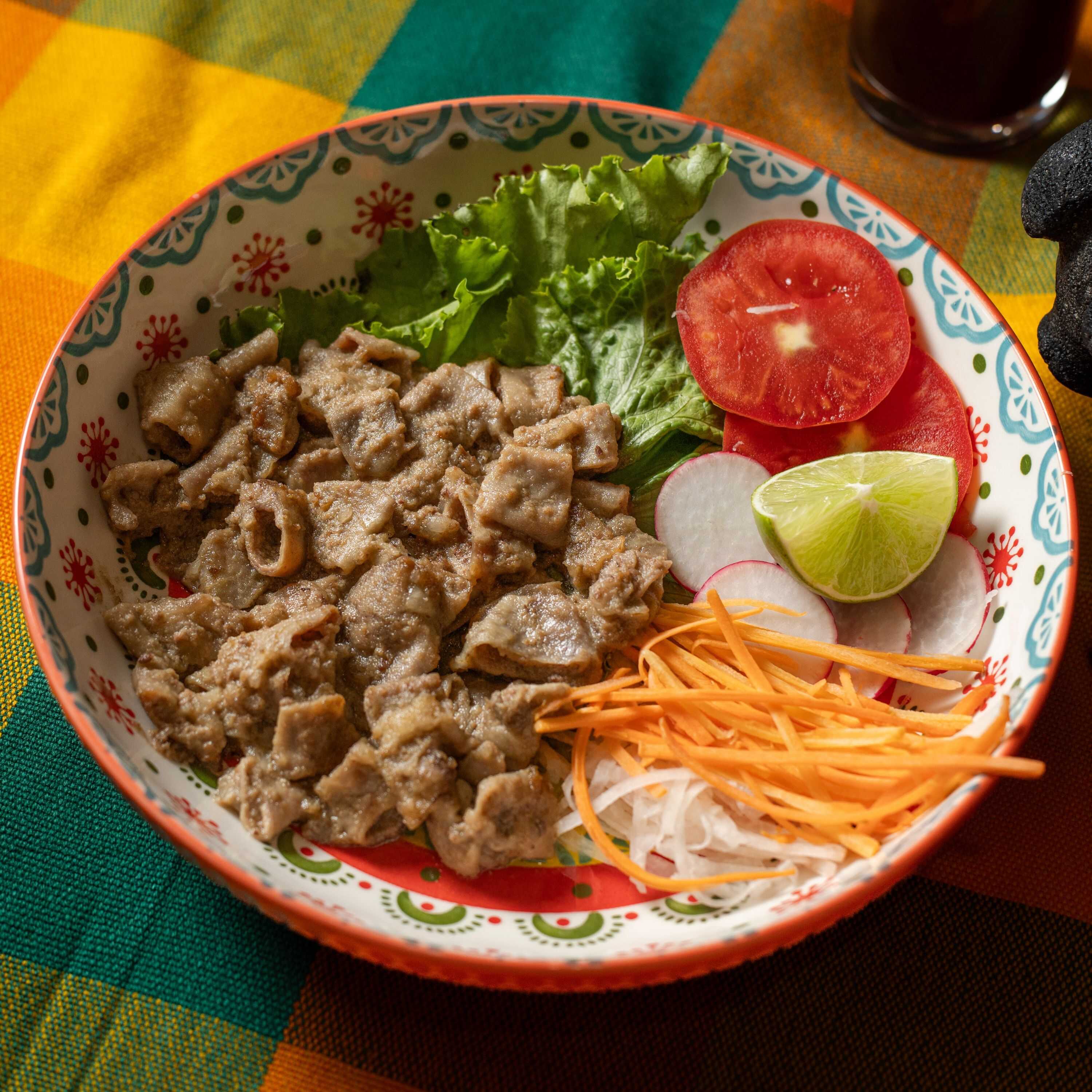 250gr de tripa fríta acompañada de ensalada y tortilla echas a mano