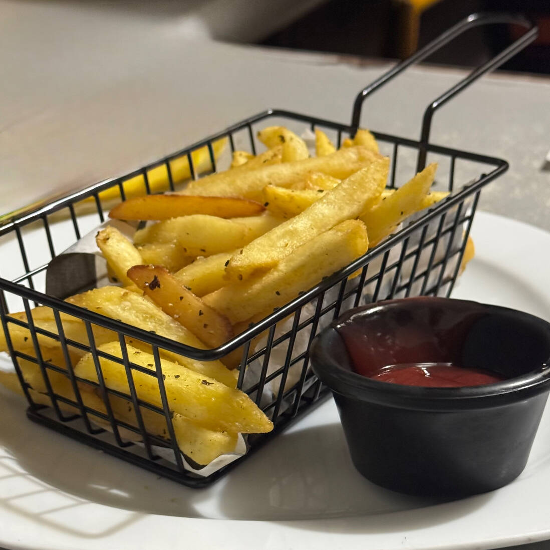 Orden de papas cortadas en gajo acompañadas con catsup
