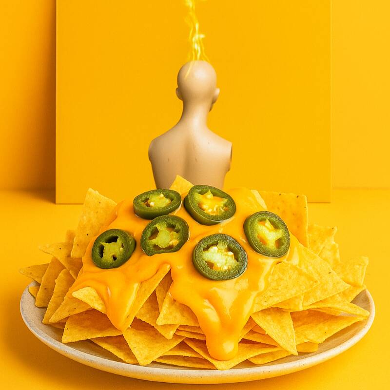 Orden de nachos acompañados de chiles en rodajas y queso derretido