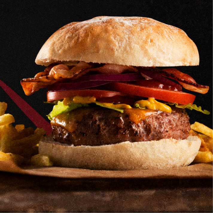 Preparada con carne 100% sirloin (150g) queso americano, lechuga, tomate, mayonesa, mostaza y catsup.