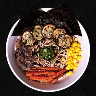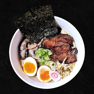 Caldo a base de hueso de cerdo preparado en cocción lenta, cerdo marinado, huevo marinado, col salteada, champiñones, alga nori, naruto y cebollín (Sujeto a disponibilidad).