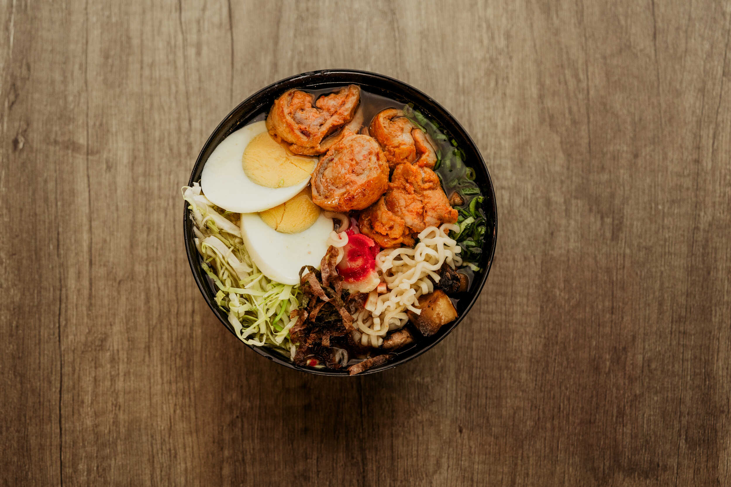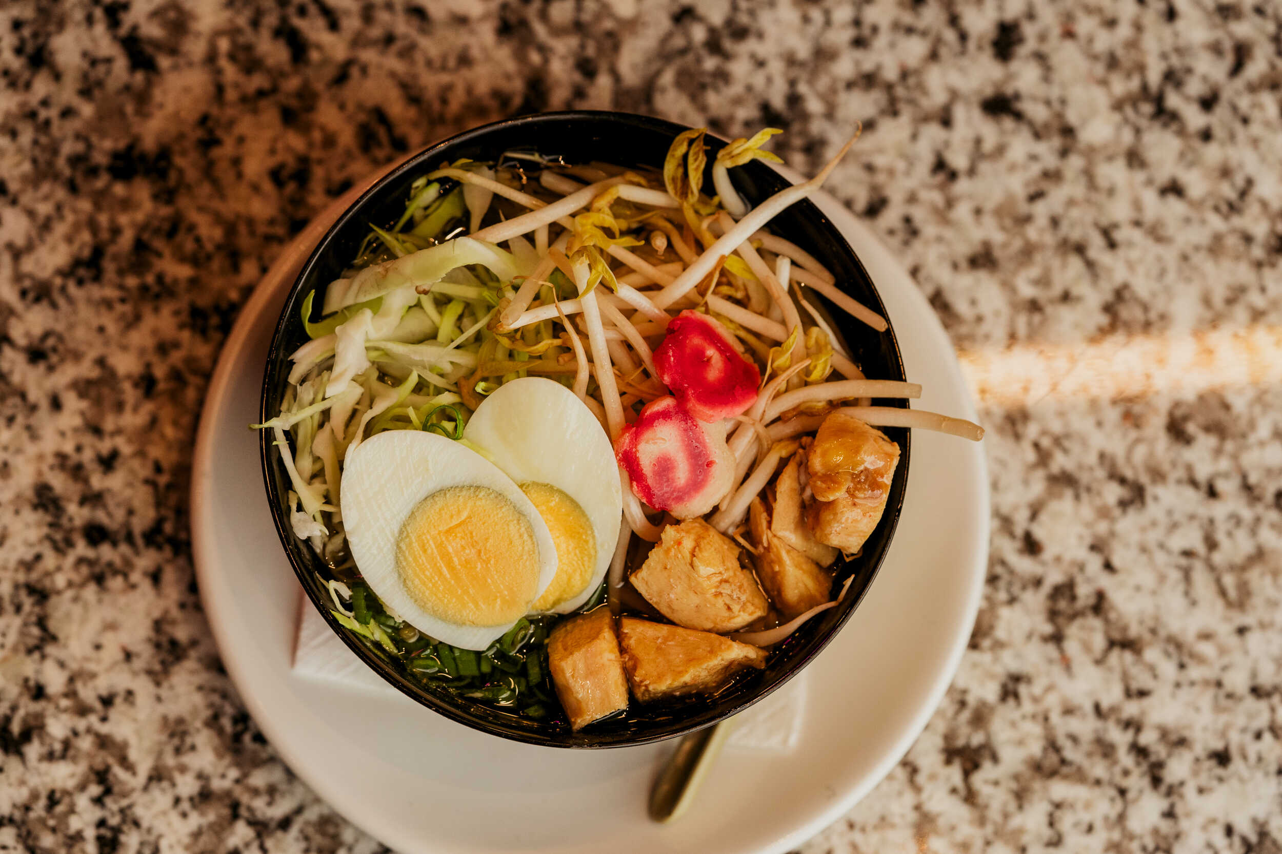Sopa tradicional japonesa con col, huevo y pasta ramen.