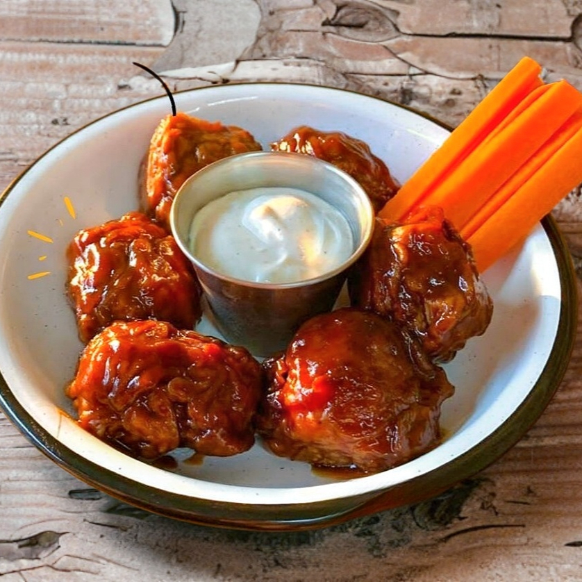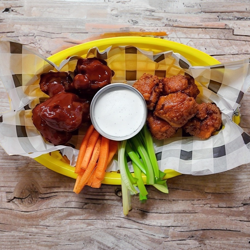 Orden individual: 6 piezas de nuestros deliciosos boneless con 1 sabor a elegir, incluyen aderezo y vegetales.