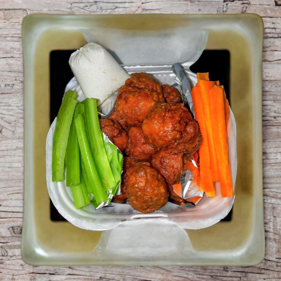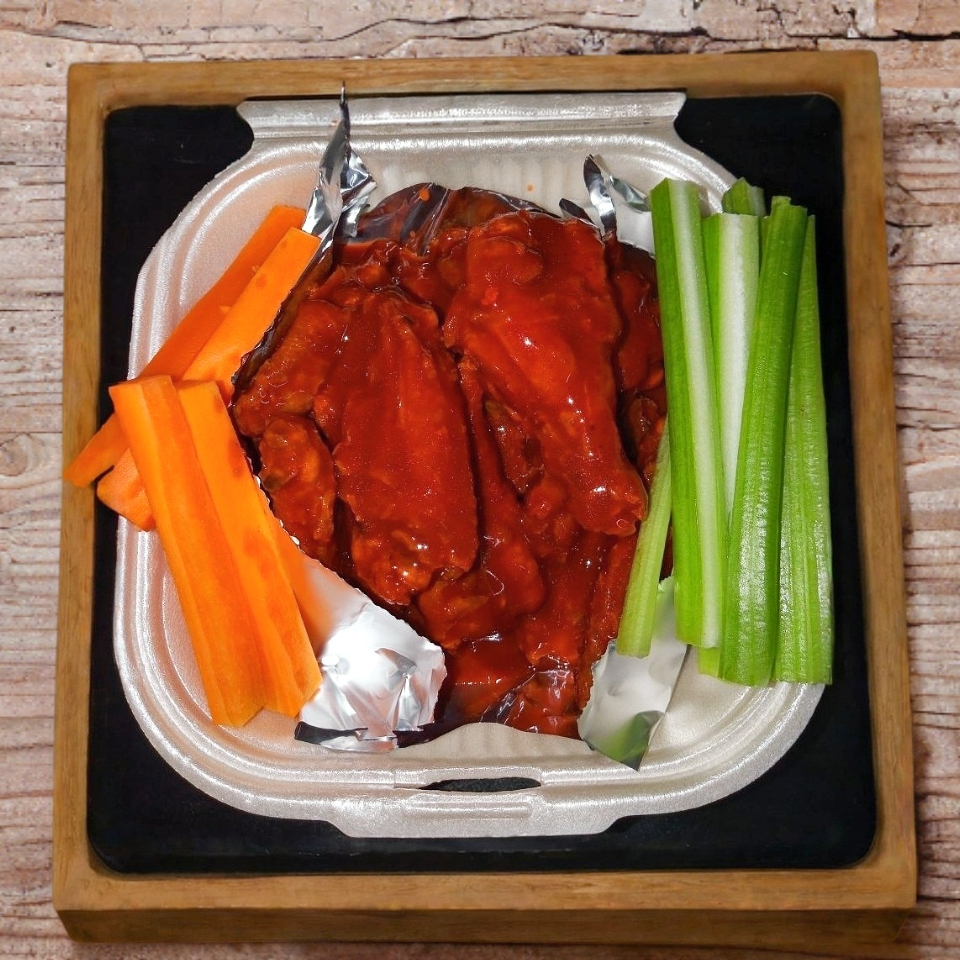 Orden individual de 6 piezas de nuestras deliciosas alitas con 1 sabor a elegir. Incluye aderezo y vegetales.
