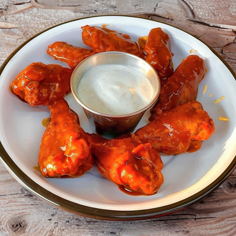 Orden individual de 8 piezas de nuestras deliciosas alitas con 1 sabor a elegir. Incluye aderezo y vegetales.