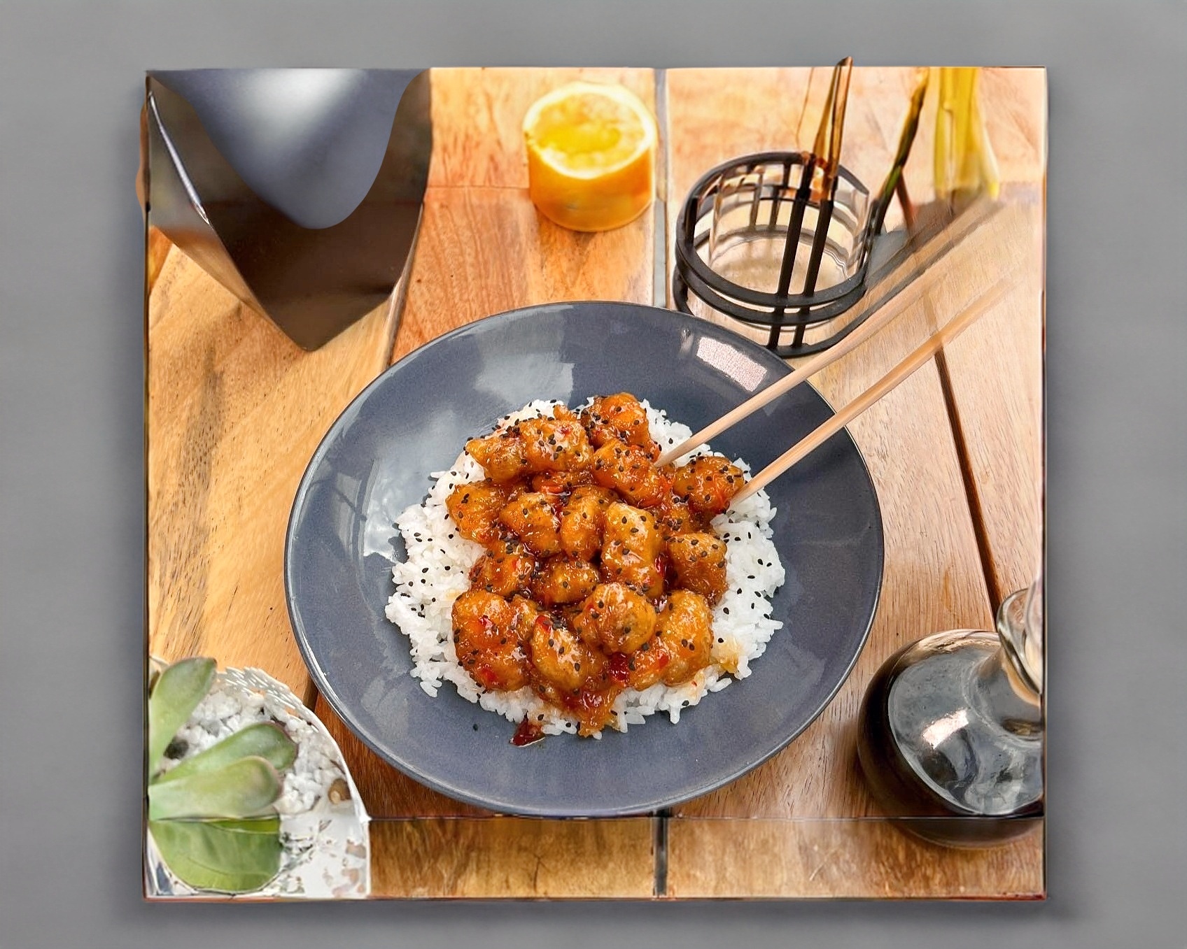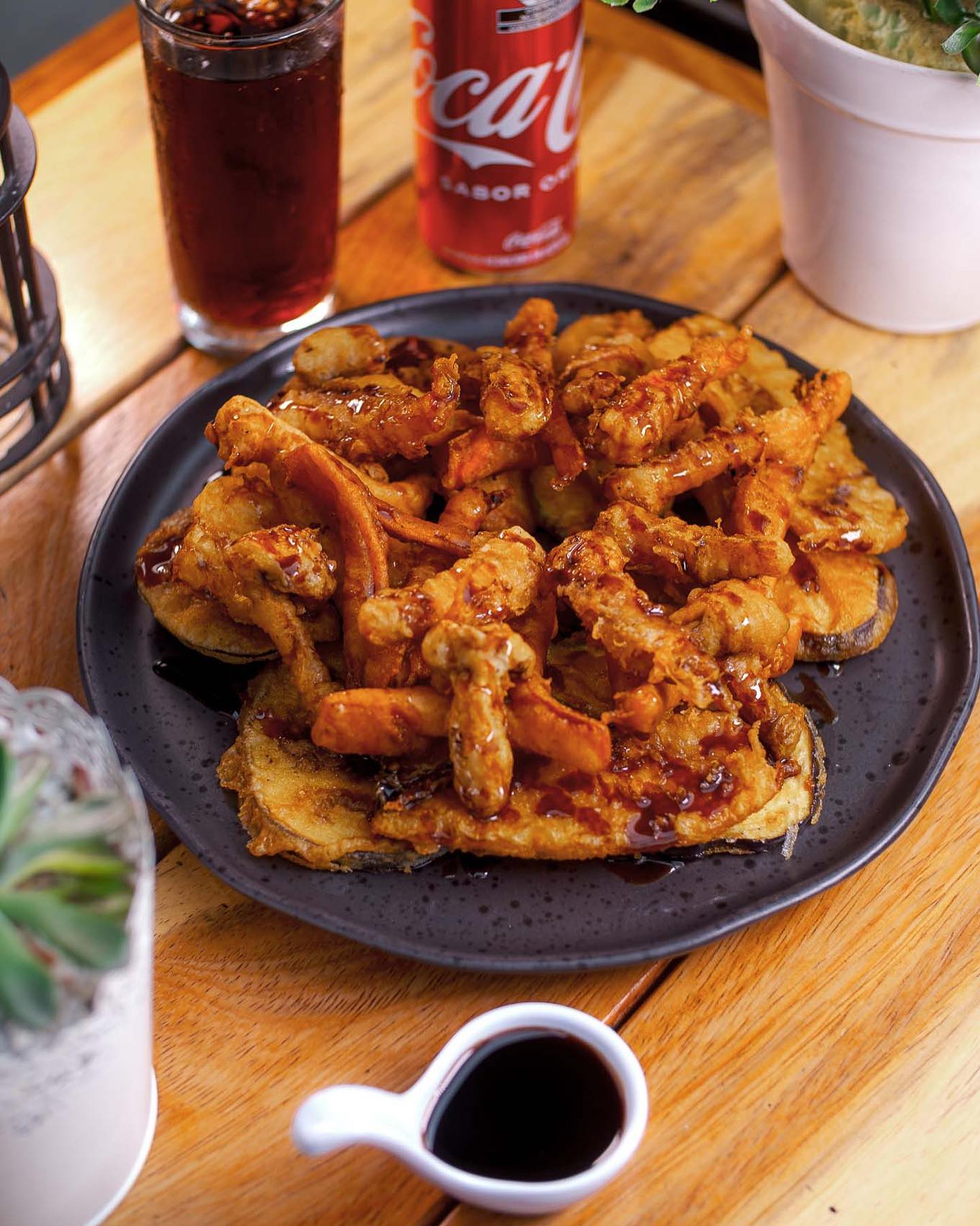 4 Piezas de camarón empanizado, rellenos queso philadelphia.