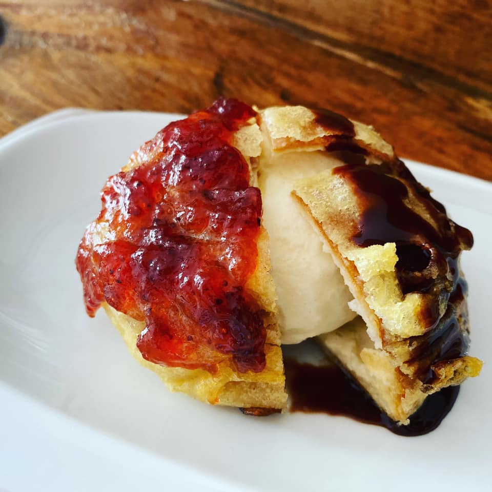 Queso philadelphia y aguacate cubierto con ajonjolí.