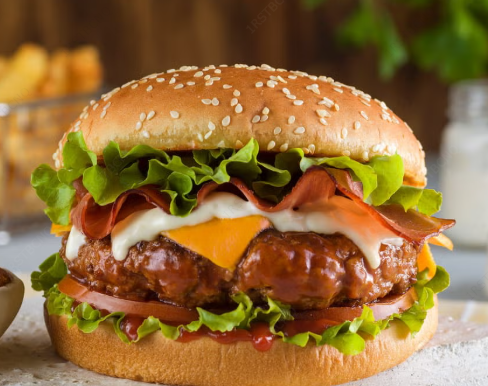 Doble carne 120 g, doble queso manchego,champiñón, tocino y papas.