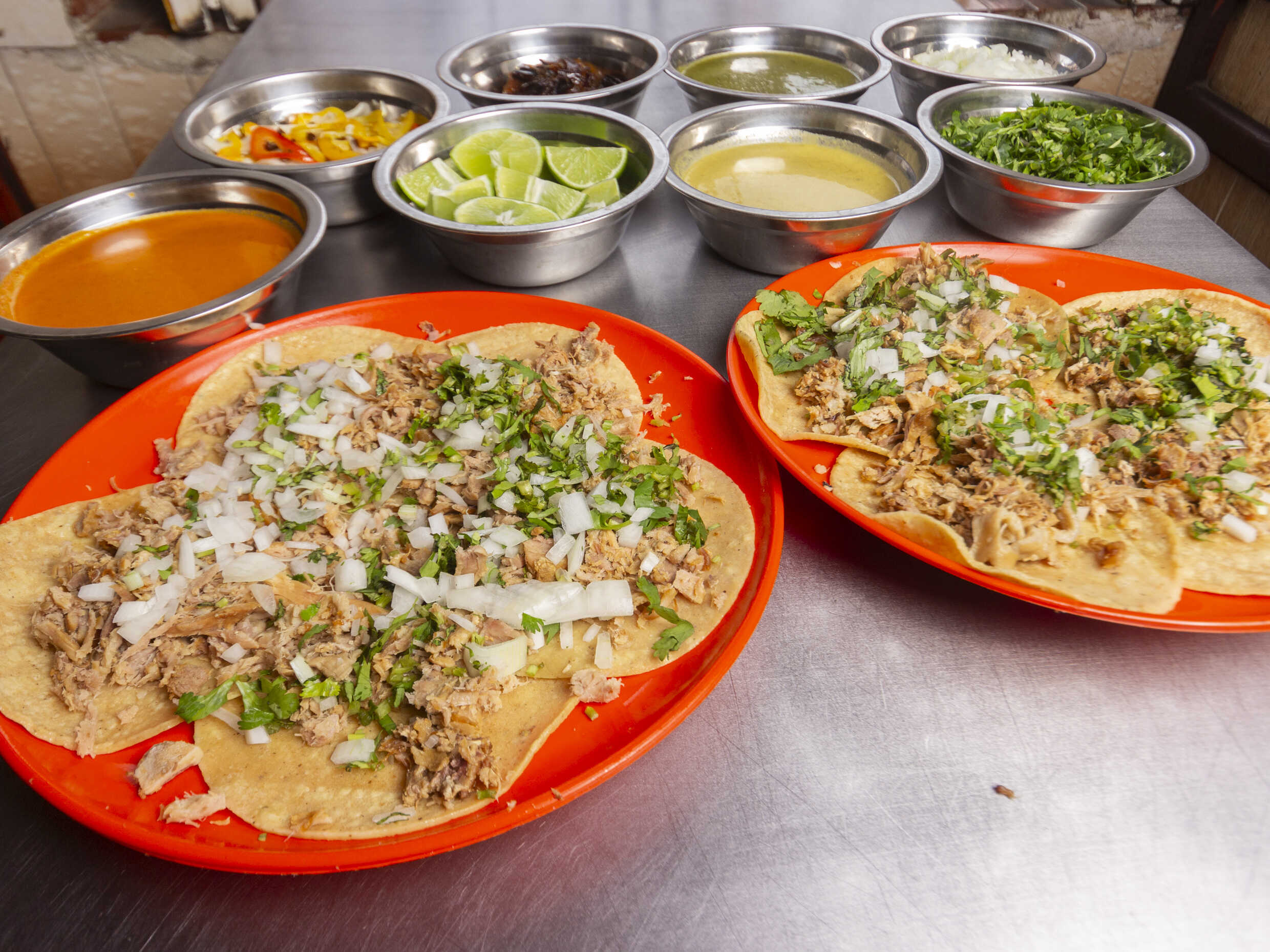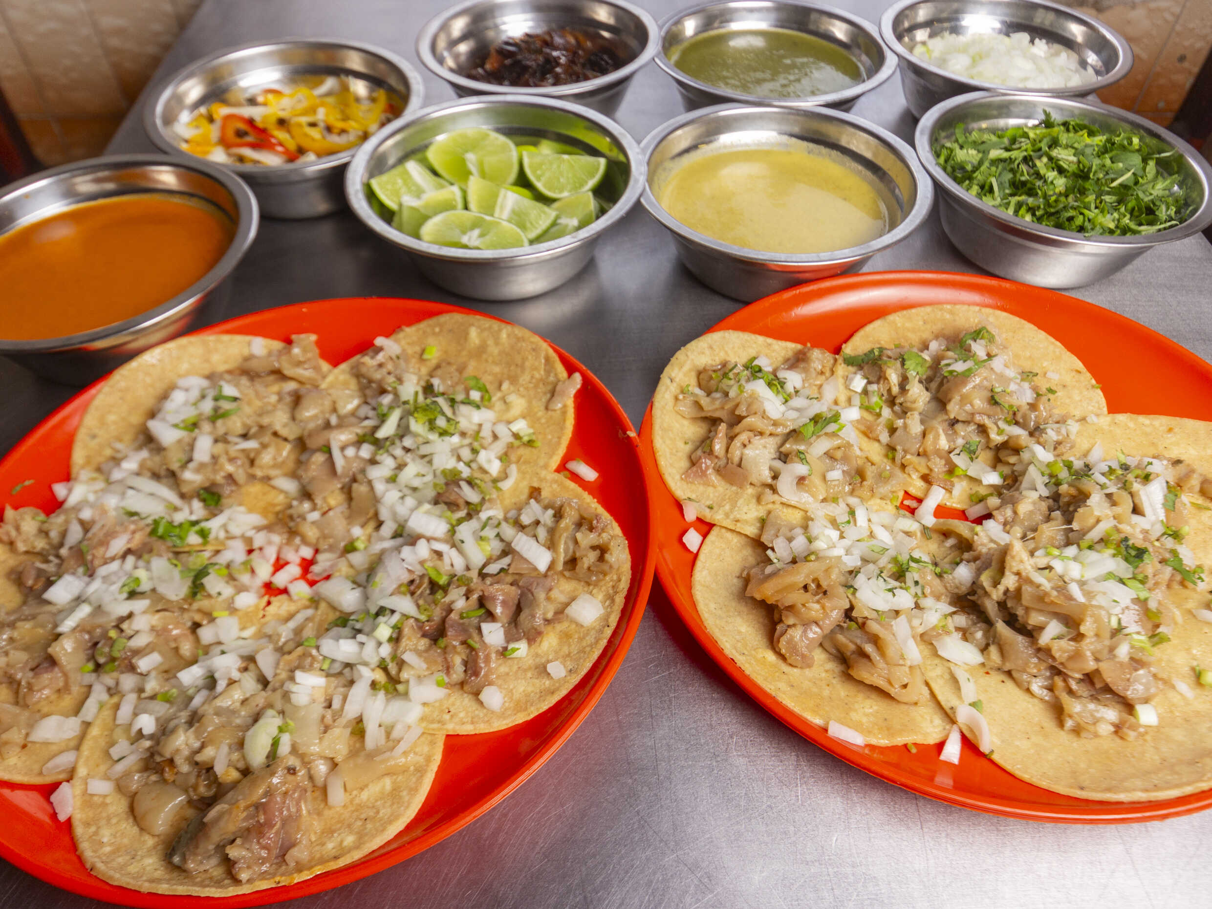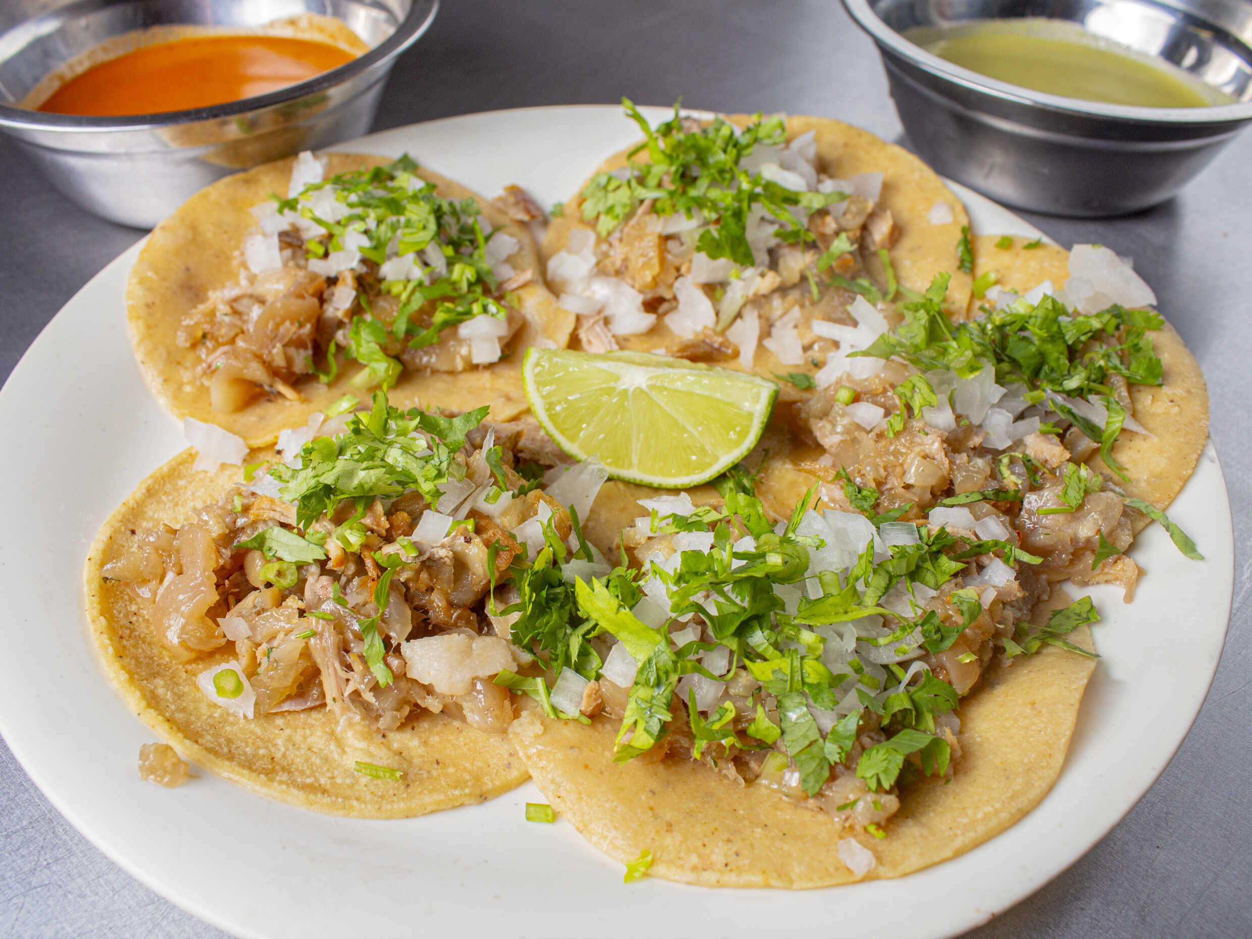 Incluye cebolla, cilantro, pepino, salsa verde y salsa roja