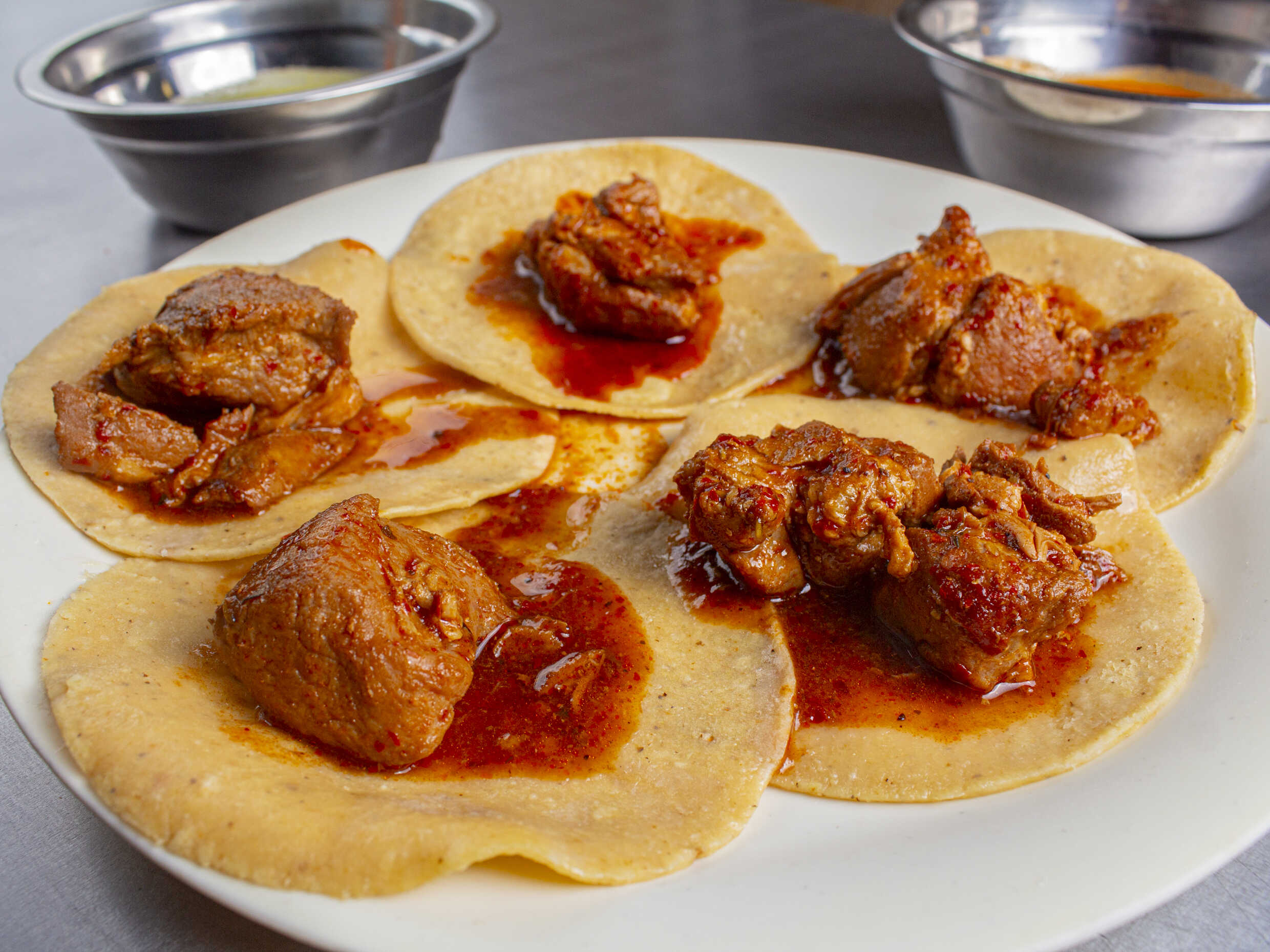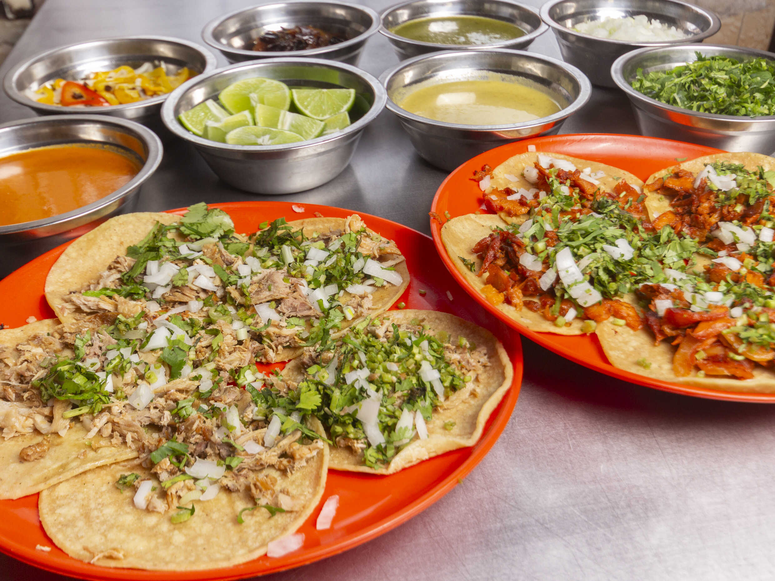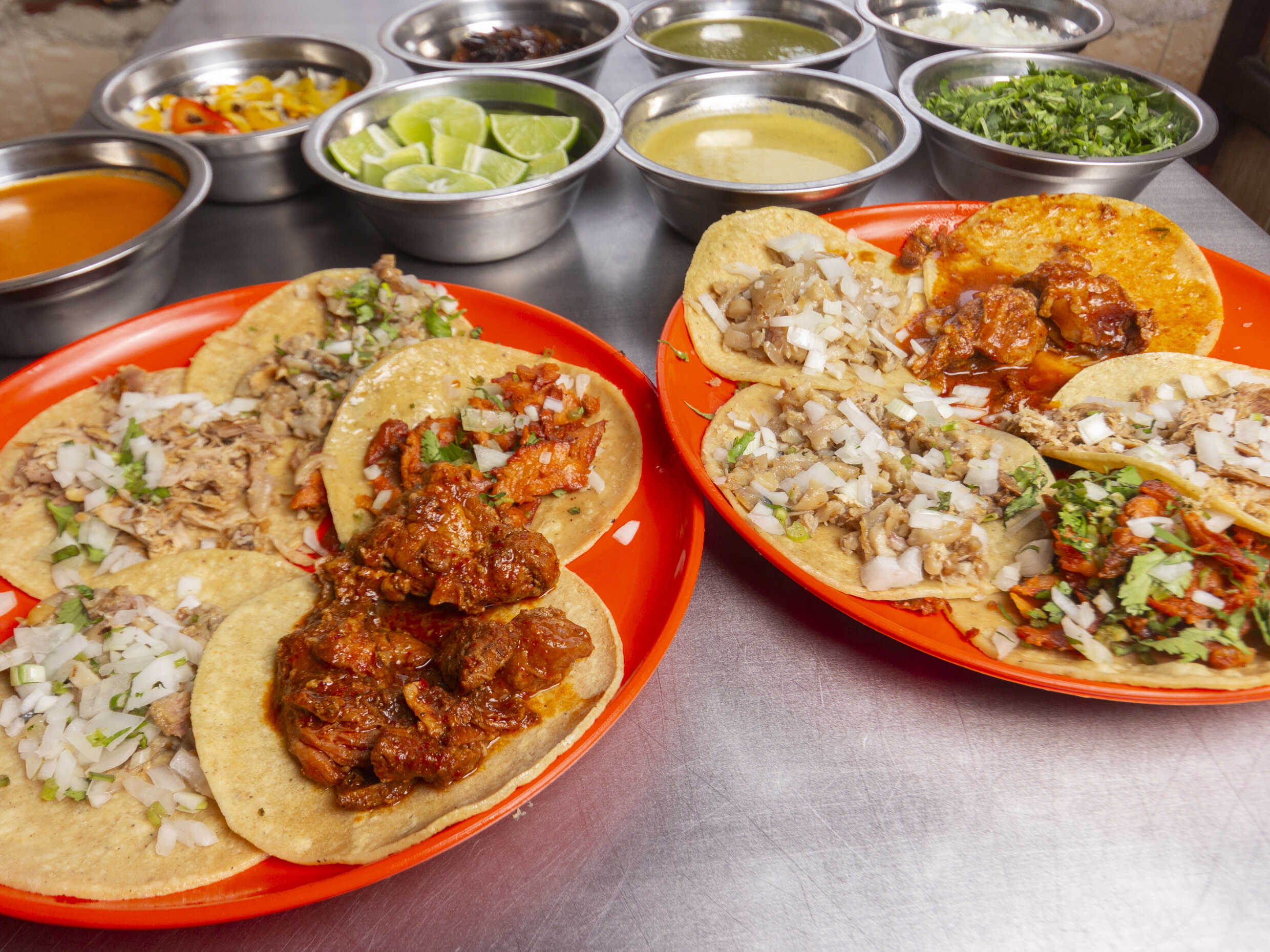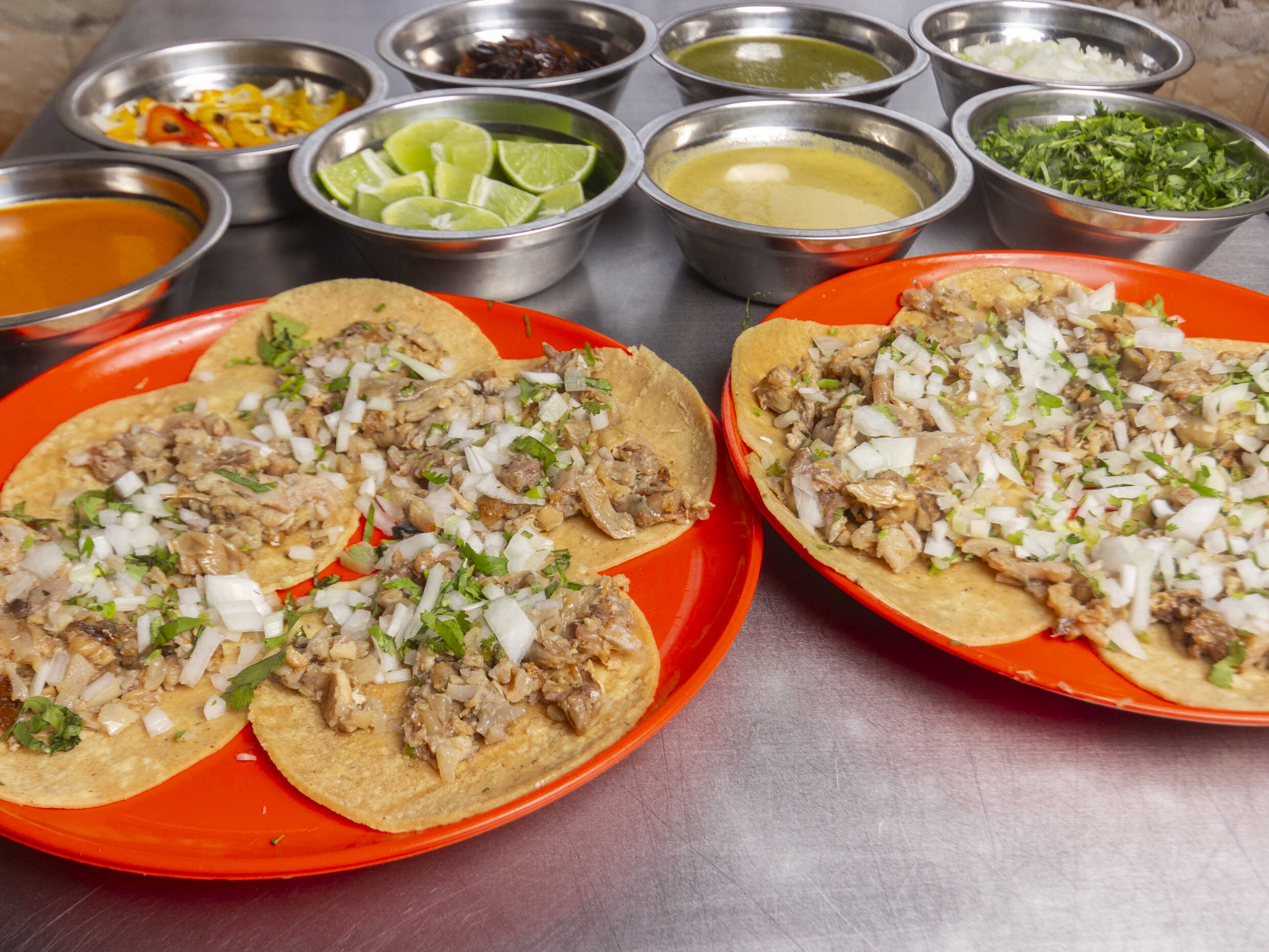 Incluye cebolla, cilantro, pepino, salsa verde y salsa roja