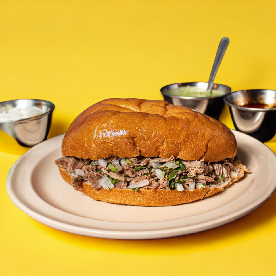 Carne de res, incluye 1/2 litro de consomé, tortillas y aditamentos a elegir.