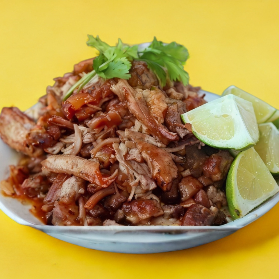 Carnitas al vapor pura maciza, incluye complementos a elegir y tortillas.